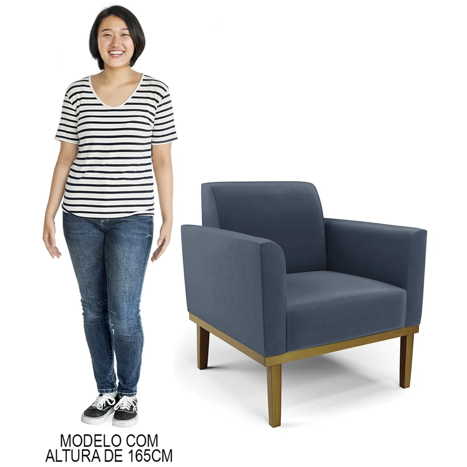 A Poltrona Decorativa é revestida em Suede, que é durável e fácil de limpar, e ainda valoriza o design da poltrona. Os braços e encosto são confortáveis em espuma D-18, já o assento é com espuma D-26 de alta densidade, que garante um assento firme e aconchegante, ideal para relaxar após um dia cansativo. A base em madeira de eucalipto é um charme à parte, que confere um toque Rústico e sofisticado à peça. São 2 poltronas com estrutura resistente que suporta até 120 kg cada. A montagem é muito simples, pois a poltrona já vem pronta, bastando apenas fixar a base com os parafusos que acompanham o produto. A limpeza também é muito prática, pois basta utilizar um pano limpo e levemente úmido, sem produtos abrasivos, para manter a sua poltrona sempre em bom estado. Sem dúvidas a Poltrona Para Sala vai transformar seu ambiente, deixando mais confortável e estiloso!