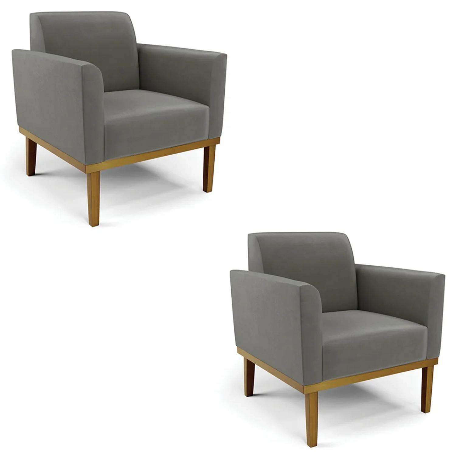 Você está procurando um Kit Poltrona que combine com a sua Sala De Estar, recepção ou seu quarto, que ofereça conforto e qualidade? Então você vai adorar a Poltrona Base Madeira Castanho Kit 2 Maressa Suede Grafite, da Ibiza!