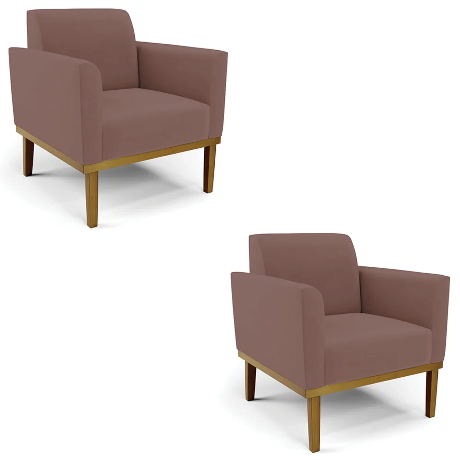 Você está procurando um Kit Poltrona que combine com a sua Sala De Estar, recepção ou seu quarto, que ofereça conforto e qualidade? Então você vai adorar a Poltrona Base Madeira Castanho Kit 2 Maressa Veludo Rosê, da Ibiza!
