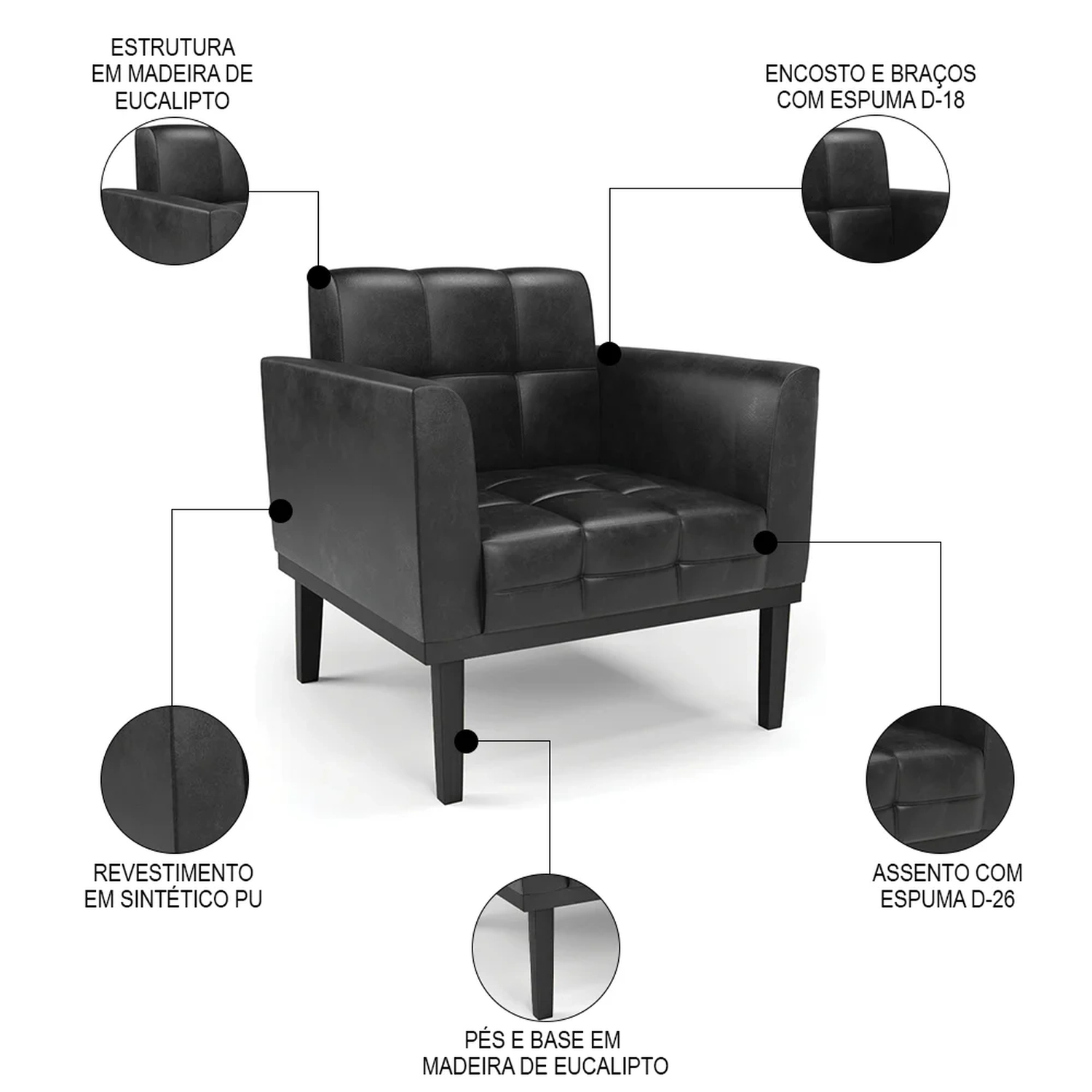 Você está procurando um Kit Poltrona que combine com a sua Sala De Estar, recepção ou seu quarto, que ofereça conforto e qualidade? Então você vai adorar a Poltrona Base Madeira Preto Kit 2 Ana Sintético PU Preto, da Ibiza!