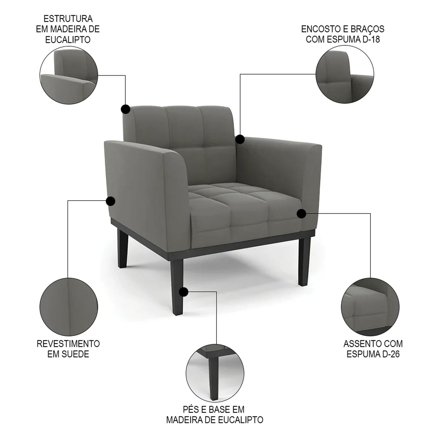 Você está procurando um Kit Poltrona que combine com a sua Sala De Estar, recepção ou seu quarto, que ofereça conforto e qualidade? Então você vai adorar a Poltrona Base Madeira Preto Kit 2 Ana Suede Grafite, da Ibiza!