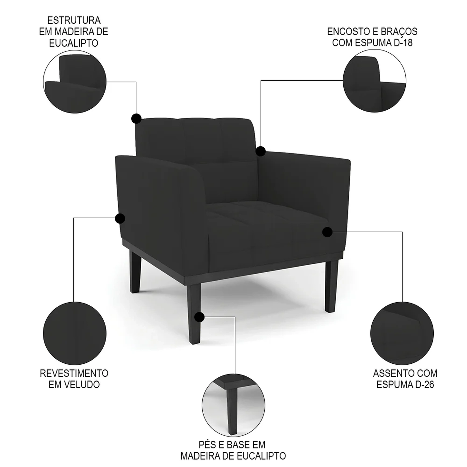 Você está procurando um Kit Poltrona que combine com a sua Sala De Estar, recepção ou seu quarto, que ofereça conforto e qualidade? Então você vai adorar a Poltrona Base Madeira Preto Kit 2 Ana Veludo Preto, da Ibiza!