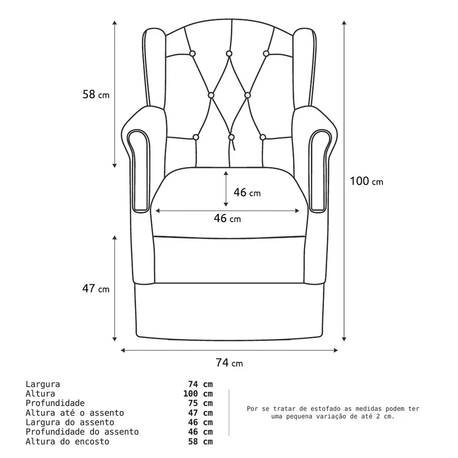 Outras medidas Poltrona