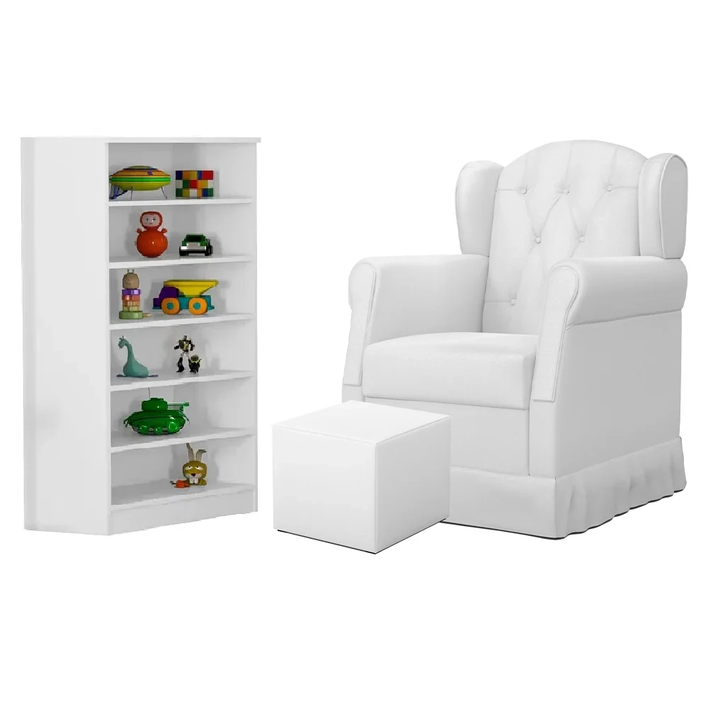 Conteúdo da Embalagem: 1 Poltrona com Puff e 1 Armário Multiuso.