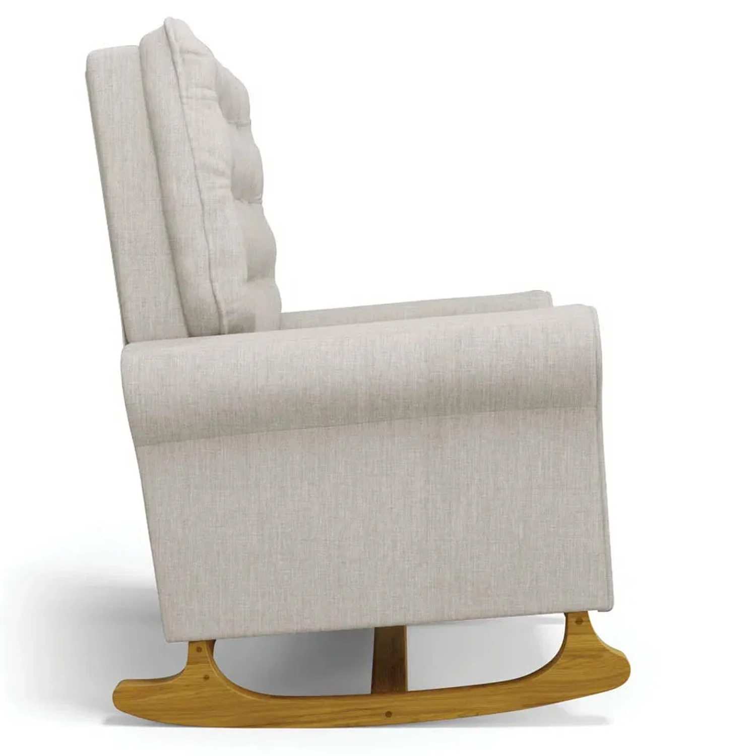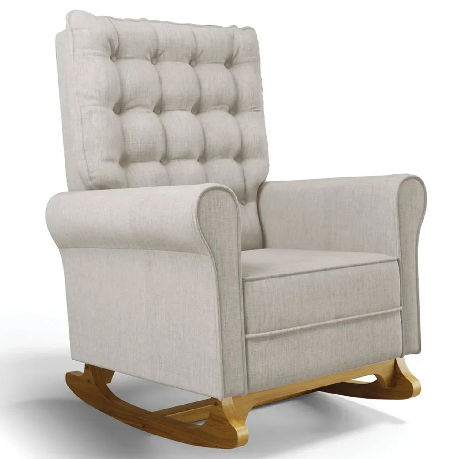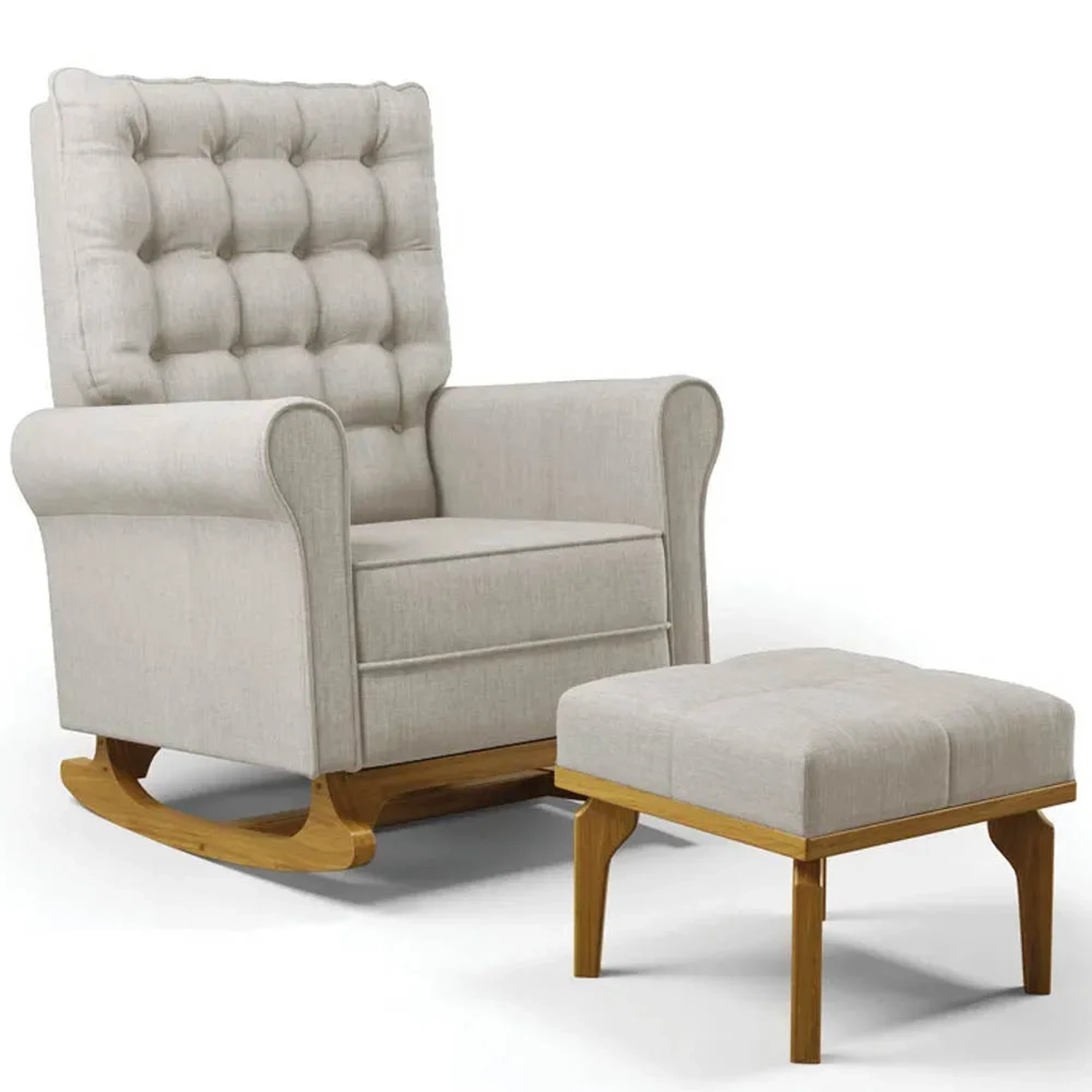 Uma Poltrona de Balanço feita com materiais de alta qualidade, estrutura em madeira de eucalipto, o tecido linho macio e resistente, e a espuma D23 a densidade ideal para o seu conforto, base em madeira com um lindo design e balanço suave, que ajuda a relaxar e a embalar o sono do seu bebê. O Kit Poltrona e Puff possui um design moderno e sofisticado, com detalhes em botonê revestido no encosto, que dão um toque de charme e elegância ao ambiente. A Poltrona de Amamentação também acompanha um puff pés madeira tecido linho, que serve como apoio para os pés ou como assento extra. O puff tem o mesmo acabamento da poltrona, criando um conjunto harmonioso e bonito.