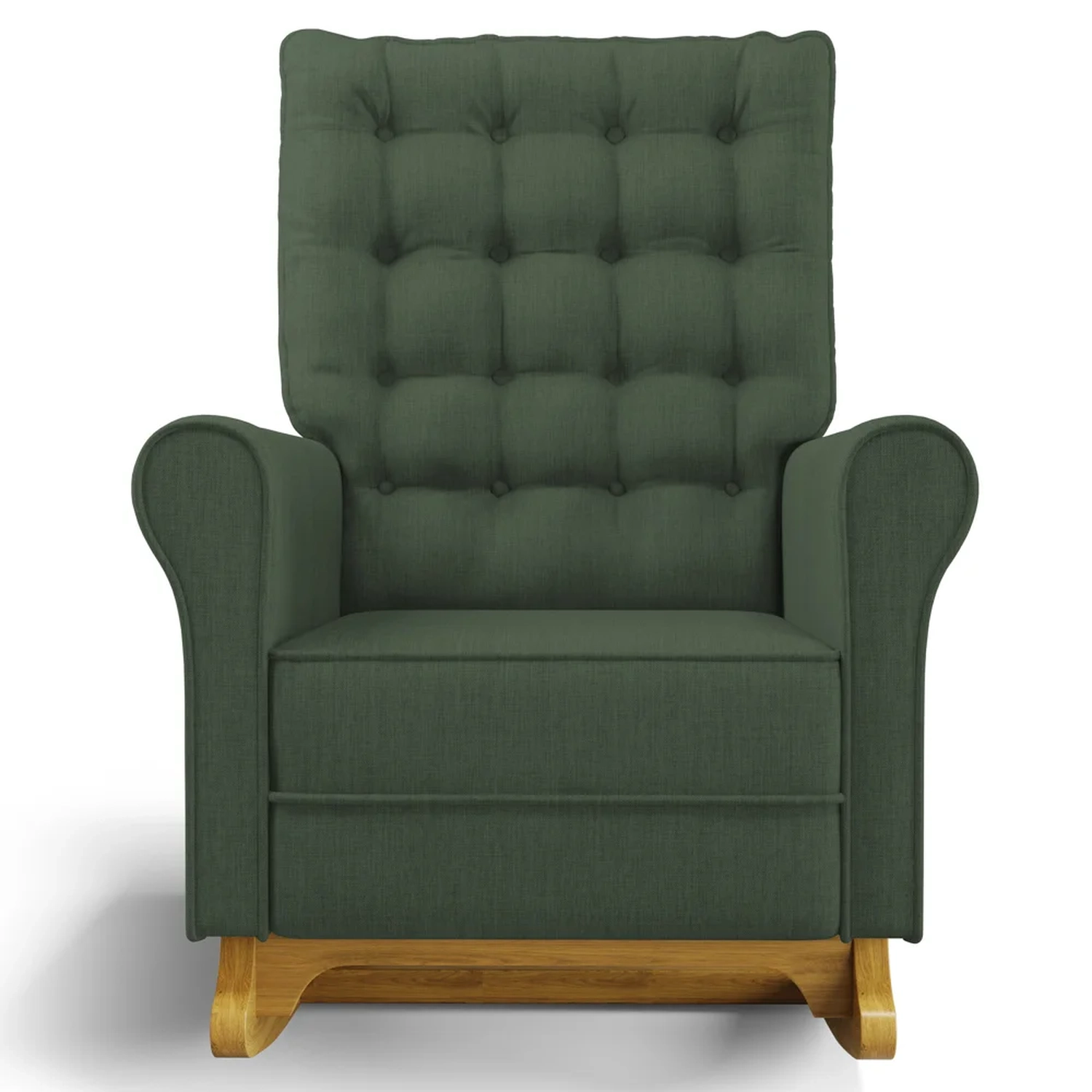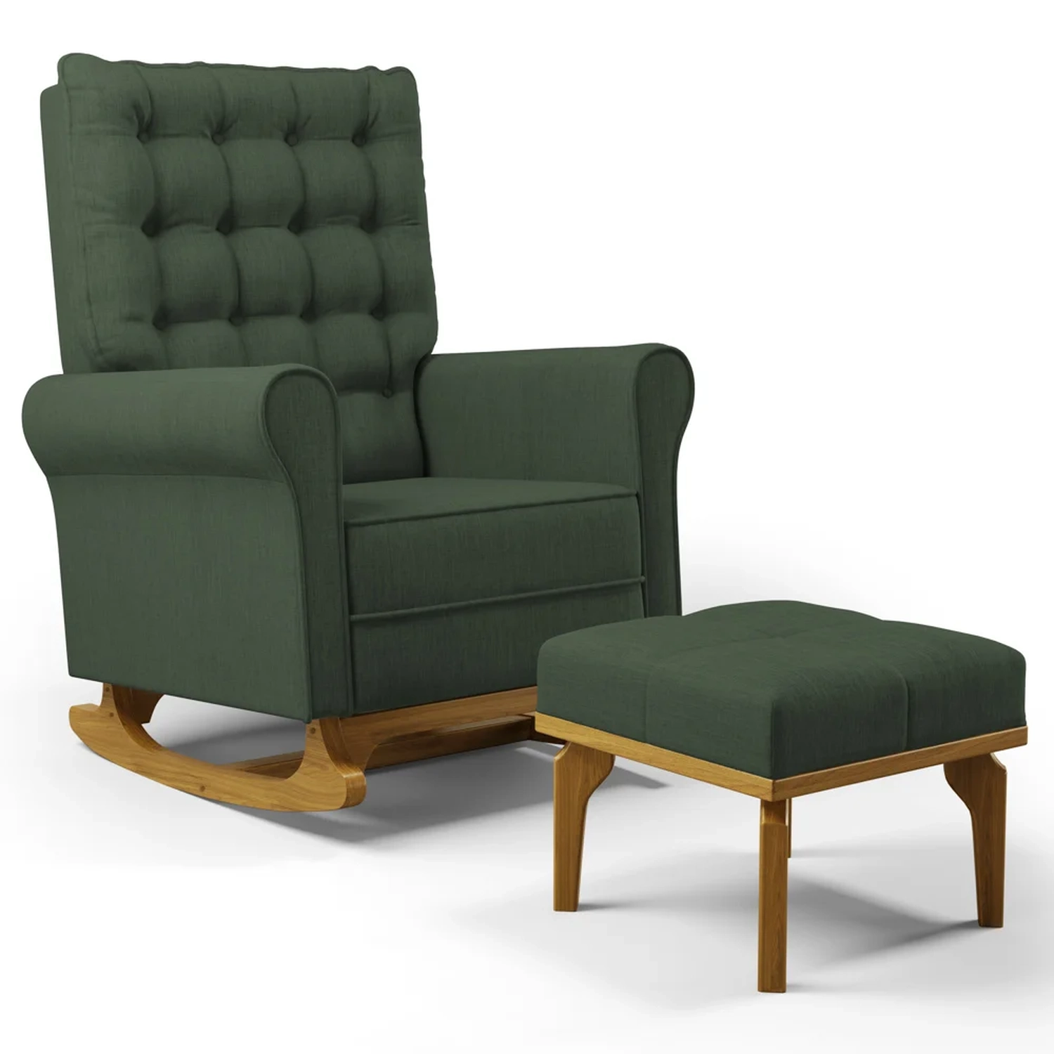 O móvel ideal para você que procura conforto, qualidade e sofisticação. Confira a Poltrona de Amamentação Balanço e Puff Base de Madeira Brenda G05 Linho Verde, da Mpozenato!
