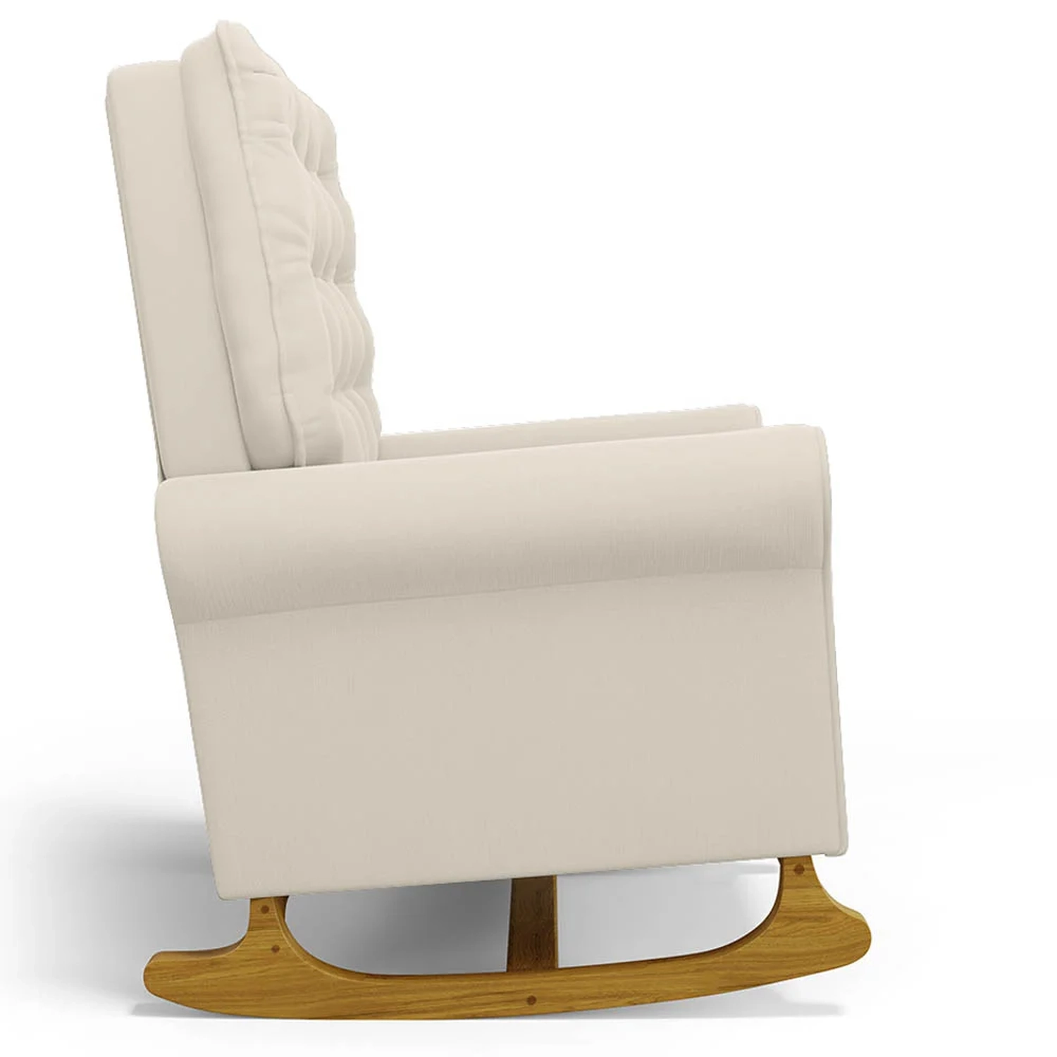 Uma Poltrona de Balanço feita com materiais de alta qualidade, estrutura em madeira de eucalipto, o tecido Veludo macio e resistente, e a espuma D23 a densidade ideal para o seu conforto, base em madeira com um lindo design e balanço suave, que ajuda a relaxar e a embalar o sono do seu bebê. O Kit Poltrona e Puff possui um design moderno e sofisticado, com detalhes em botonê revestido no encosto, que dão um toque de charme e elegância ao ambiente. A Poltrona de Amamentação também acompanha um puff pés madeira tecido Veludo, que serve como apoio para os pés ou como assento extra. O puff tem o mesmo acabamento da poltrona, criando um conjunto harmonioso e bonito.
