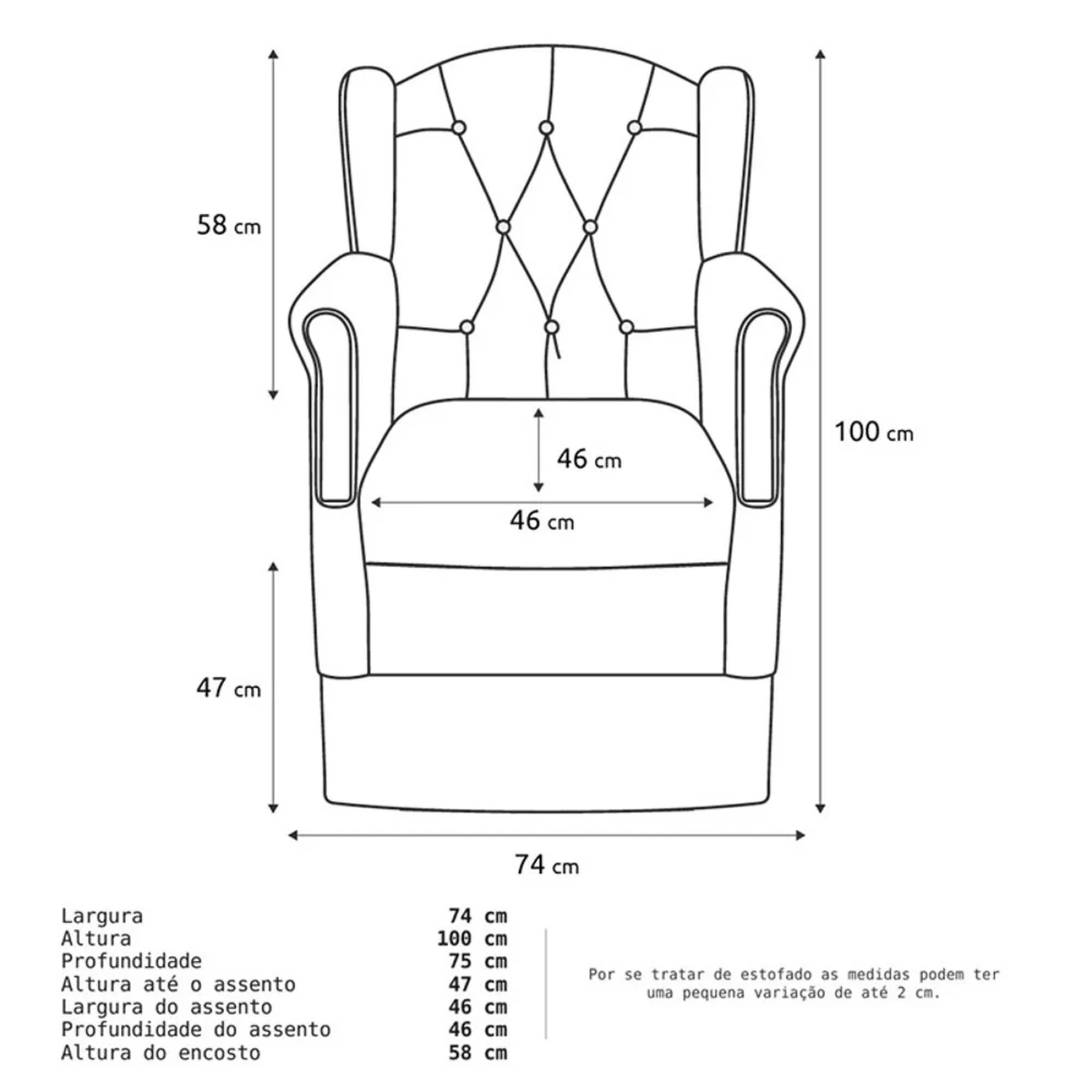 • As dimensões de estofados podem apresentar variação de até 5 cm.