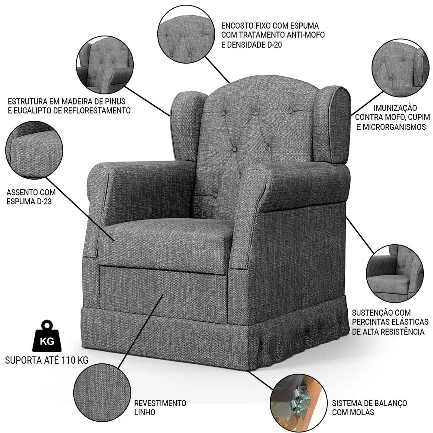 Peso Suportado: 110 kg.