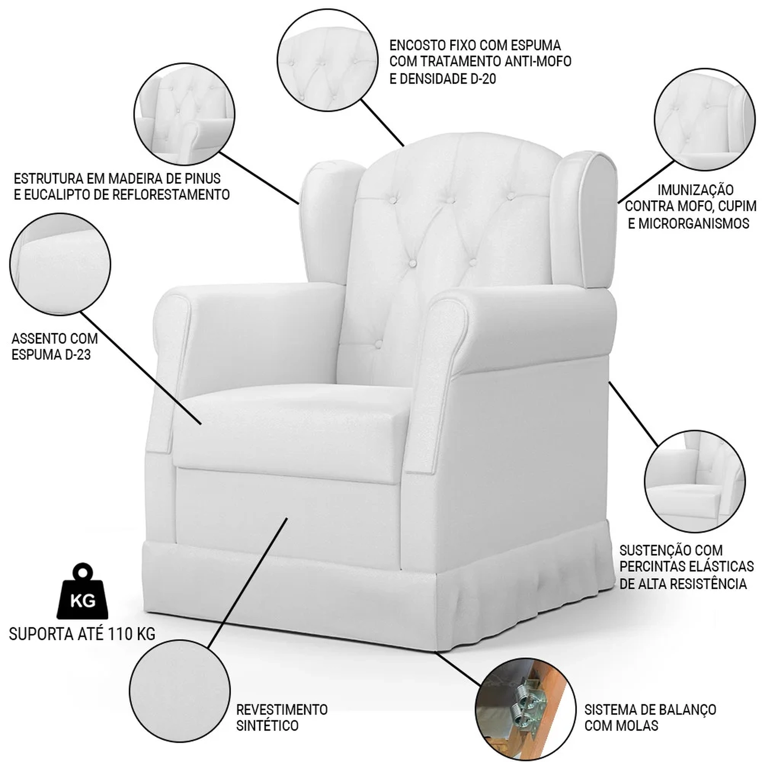 Peso Suportado: 110 kg.