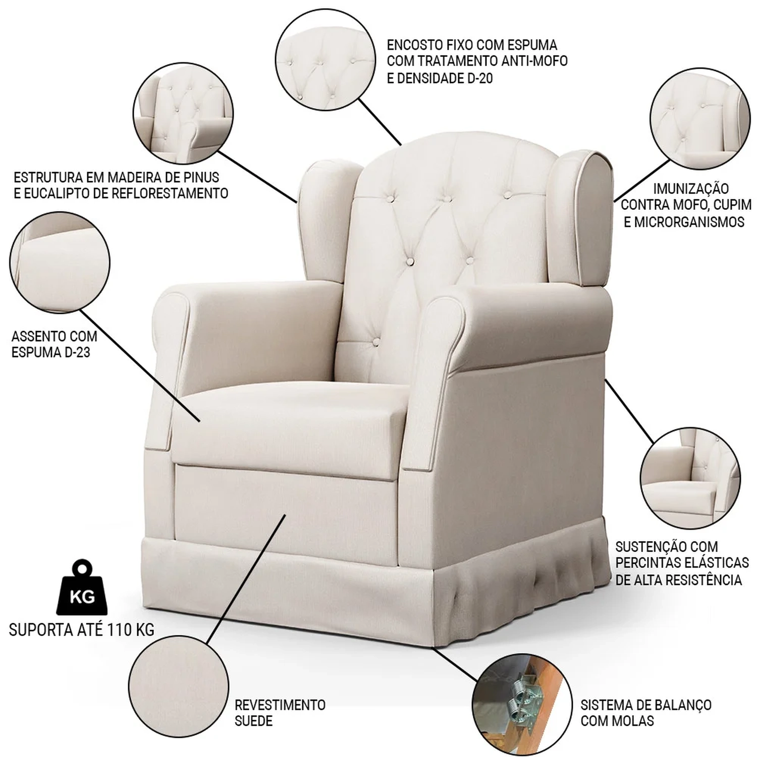 Peso Suportado: 110 kg.