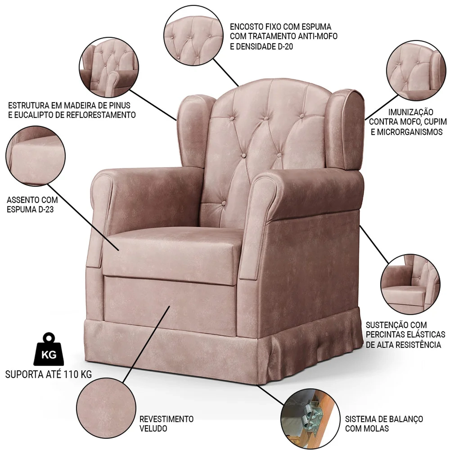 Peso Suportado: 110 kg.