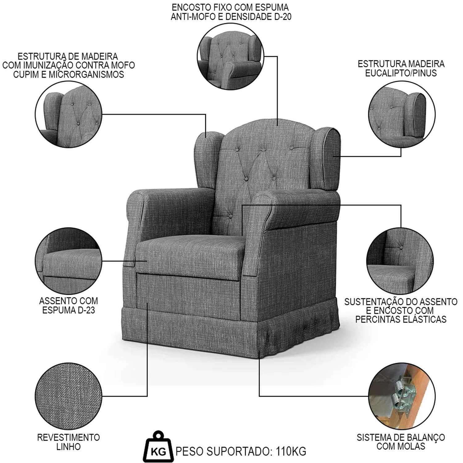 Peso Suportado: 110 kg.