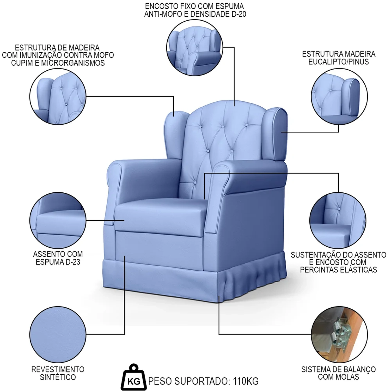Peso Suportado: 110 kg.