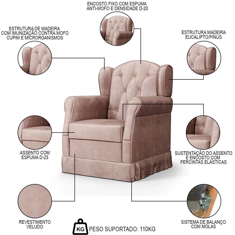 A Poltrona de Amamentação Balanço Lucy Z39 Veludo Rosê - Mpozenato é um móvel que alia conforto e design. Fabricada em madeira de Eucalipto de Reflorestamento, ela possui uma estrutura resistente e durável. Sua espuma D-20 e D-23 proporciona um conforto extra para os momentos de descanso e amamentação. O Balanço é um diferencial que ajuda a relaxar e acalmar tanto a mãe quanto o bebê. Além disso, o revestimento Veludo é um tecido macio e agradável ao toque, que agrega modernidade e aconchego ao ambiente. Com a Poltrona Lucy, a mamãe terá um cantinho especial para cuidar do seu bebê com todo o conforto e estilo que deseja. Compre já!