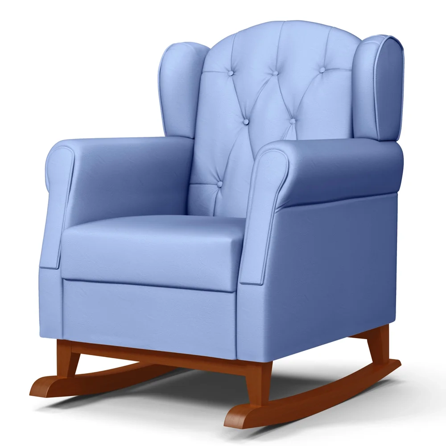 Poltrona de Amamentação Base Madeira Balanço Letícia Sintético Azul - Phoenix 140802