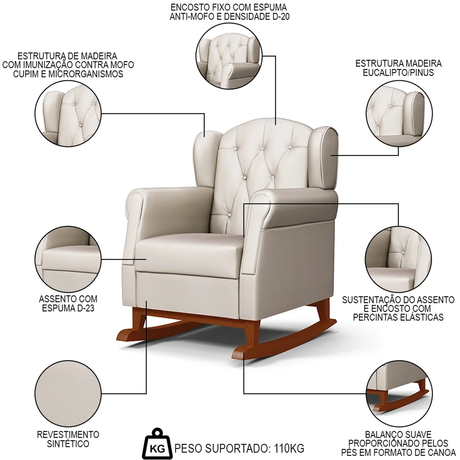 A Poltrona de Amamentação Base Madeira Balanço Letícia Sintético Bege - Phoenix Baby é a escolha ideal para as mamães que buscam conforto, beleza e qualidade. Ela possui uma estrutura de madeira de reflorestamento com imunização contra mofo, cupim e microrganismos, garantindo maior durabilidade e resistência. A sustentação do assento e encosto é feita com percintas elásticas que proporcionam mais maciez e ergonomia. O Tecido Sintético é fácil de limpar e tem um toque suave na pele. A base canoa com balanço permite um movimento suave e relaxante, ideal para ninar o bebê ou descansar após um dia cansativo. A poltrona tem um design moderno e elegante que combina com qualquer ambiente. Ela está disponível em várias cores para você escolher a que mais combina com o seu estilo. Não perca essa oportunidade de ter uma Poltrona de Amamentação e Descanso na sua casa. Você vai se surpreender com o conforto e a qualidade dessa poltrona. Compre já!