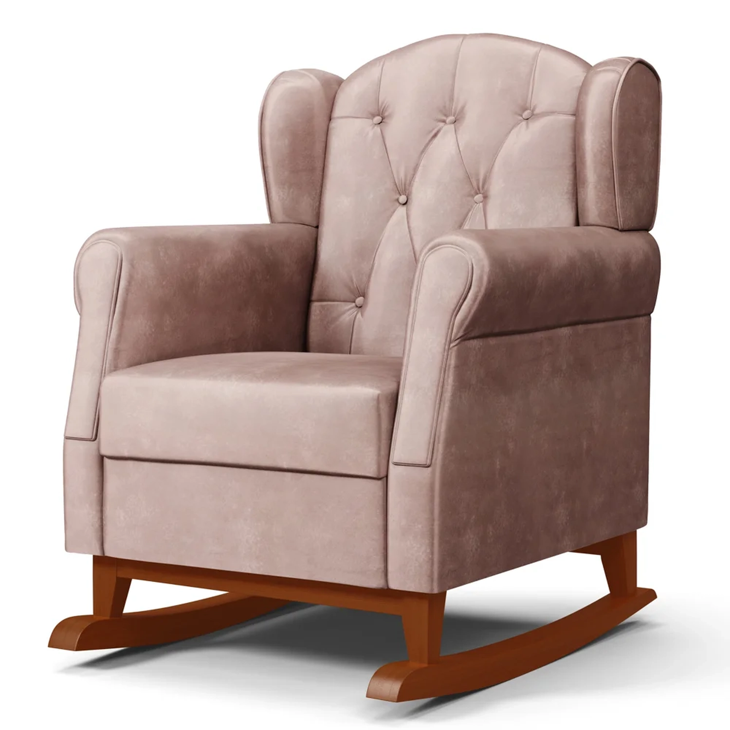 A Poltrona de Amamentação Base Madeira Balanço Letícia Veludo Rosê - Phoenix Baby é a escolha ideal para as mamães que buscam conforto, beleza e qualidade. Ela possui uma estrutura de madeira de reflorestamento com imunização contra mofo, cupim e microrganismos, garantindo maior durabilidade e resistência. A sustentação do assento e encosto é feita com percintas elásticas que proporcionam mais maciez e ergonomia. A base canoa com balanço permite um movimento suave e relaxante, ideal para ninar o bebê ou descansar após um dia cansativo. A poltrona tem um design moderno e elegante que combina com qualquer ambiente. Ela está disponível em várias cores para você escolher a que mais combina com o seu estilo. Não perca essa oportunidade de ter uma Poltrona de Amamentação e Descanso na sua casa. Você vai se surpreender com o conforto e a qualidade dessa poltrona. Compre já!