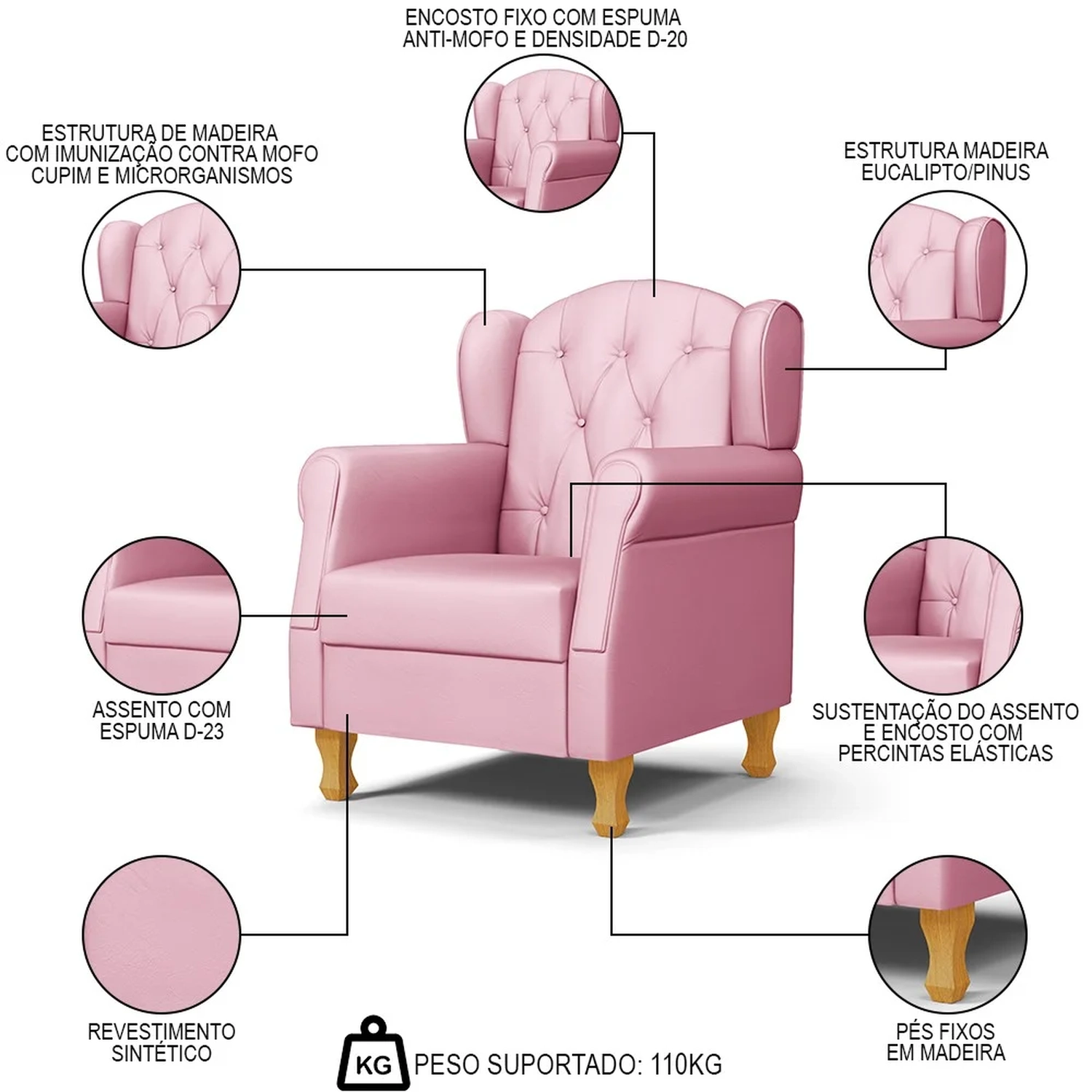 A Poltrona de Amamentação com Pés de Madeira Letícia Sintético Rosa - Phoenix Baby é a escolha ideal para as mamães que buscam conforto, beleza e qualidade. Ela possui uma estrutura de madeira de reflorestamento com imunização contra mofo, cupim e microrganismos, garantindo maior durabilidade e resistência. A sustentação do assento e encosto é feita com percintas elásticas que proporcionam mais maciez e ergonomia. O Tecido Sintético é fácil de limpar e tem um toque suave na pele, a espuma é de alta densidade nos assentos, braços e encosto. A Poltrona possui estrutura firme e segura pois é produzida com pés de madeira para fixação na base. Além disso tem um design moderno e elegante que combina com qualquer ambiente. Ela está disponível em várias cores para você escolher a que mais combina com o seu estilo. Não perca essa oportunidade de ter uma Poltrona de Amamentação e Descanso na sua casa. Você vai se surpreender com o conforto e a qualidade dessa poltrona. Adquira já a sua!