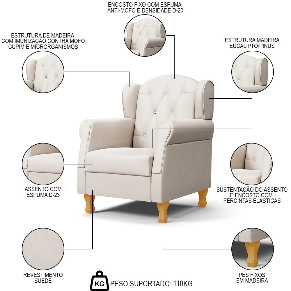 Conteúdo da Embalagem: 1 Poltrona, 4 Pés de Madeira.