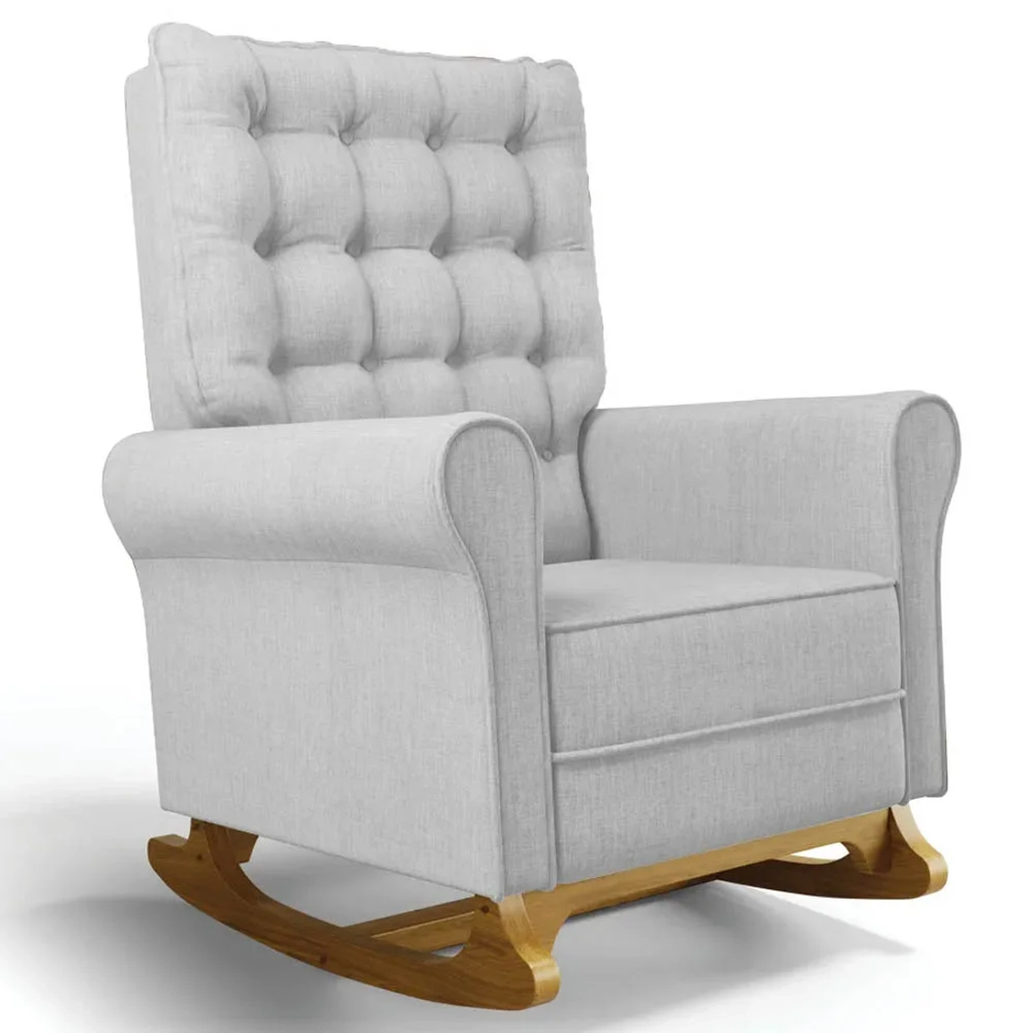 O móvel ideal para você que procura conforto, qualidade e sofisticação. Confira a Poltrona de Amamentação e Descanso Base Madeira Com Balanço Brenda G05 Linho Cinza Claro, da Mpozenato!