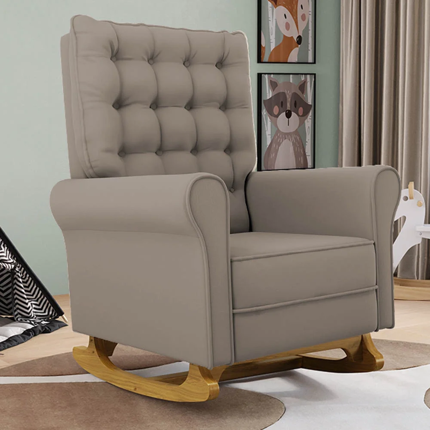 Uma Poltrona de Balanço é feita com materiais de alta qualidade, estrutura em madeira de eucalipto, o tecido Veludo macio e resistente, percintas elásticas no assento e encosto, e a espuma D23 a densidade ideal para o seu conforto, base em madeira com um lindo design e balanço suave, que ajuda a relaxar e a embalar o sono do seu bebê. A Poltrona de Amamentação, possui um design moderno e sofisticado, com detalhes em botonê revestido no encosto, que dão um toque de charme e elegância ao ambiente.