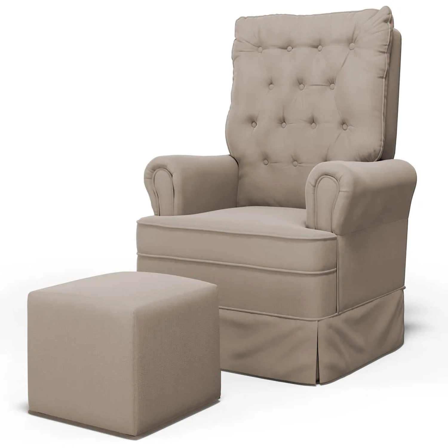 Uma Poltrona de Balanço feita com materiais de alta qualidade, estrutura em madeira de eucalipto, o tecido Veludo macio e resistente, e a espuma D23 a densidade ideal para o seu conforto, com um lindo design e balanço suave, que ajuda a relaxar e a embalar o sono do seu bebê. O Kit Poltrona e Puff possui um design moderno e sofisticado, com detalhes em botonê revestido no encosto, que dão um toque de charme e elegância ao ambiente. A Poltrona de Amamentação também acompanha um puff, que serve como apoio para os pés ou como assento extra. O puff tem o mesmo acabamento da poltrona, criando um conjunto harmonioso e bonito.