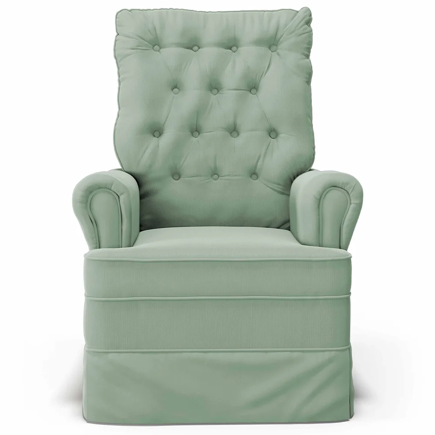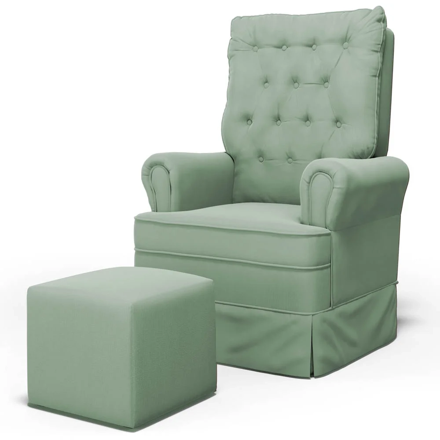 O móvel ideal para você que procura conforto, qualidade e sofisticação. Confira a Poltrona de Amamentação e Descanso com Balanço e Puff Laís G05 Veludo Verde, da Mpozenato!
