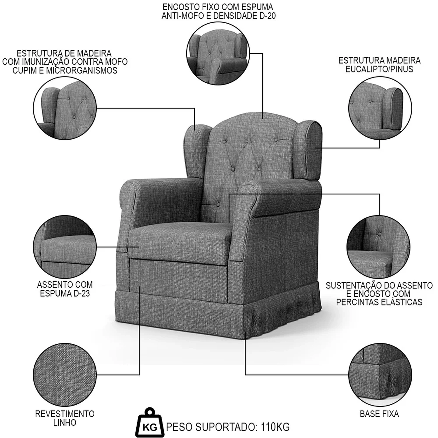 Peso Suportado: 110 kg.