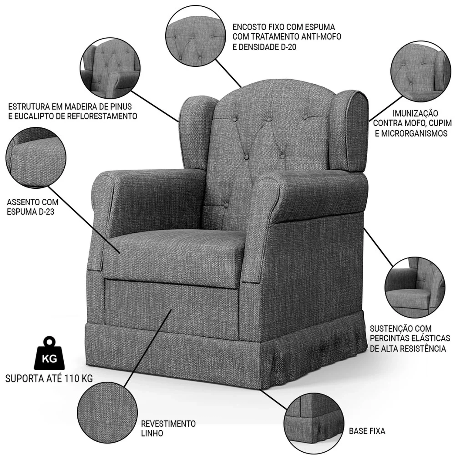 Conteúdo da Embalagem: 1 Poltrona, 1 Puff.