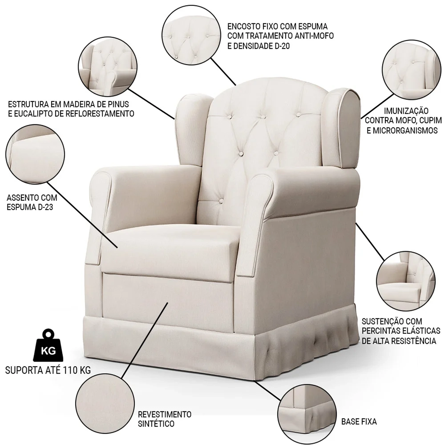 Peso Suportado: 110 kg.