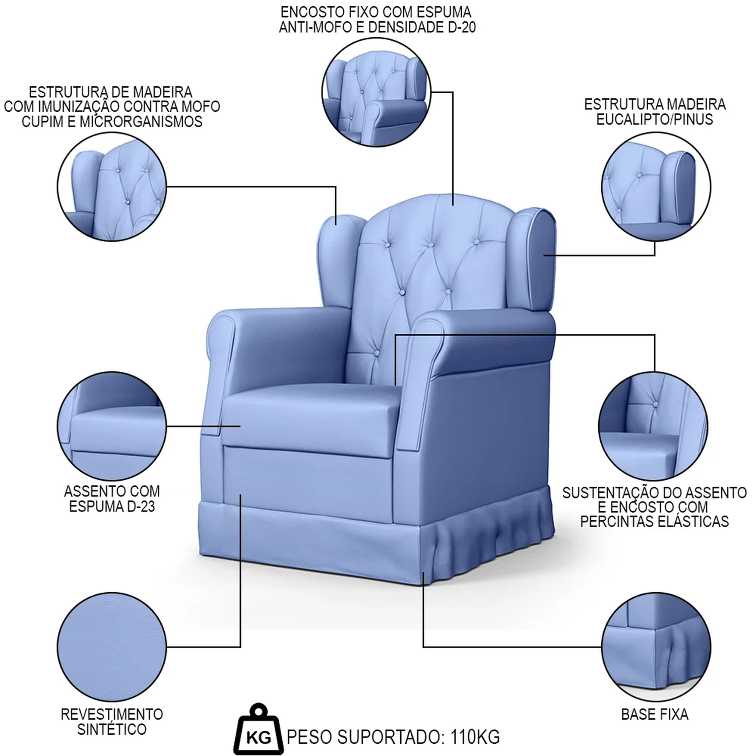 Peso Suportado: 110 kg.