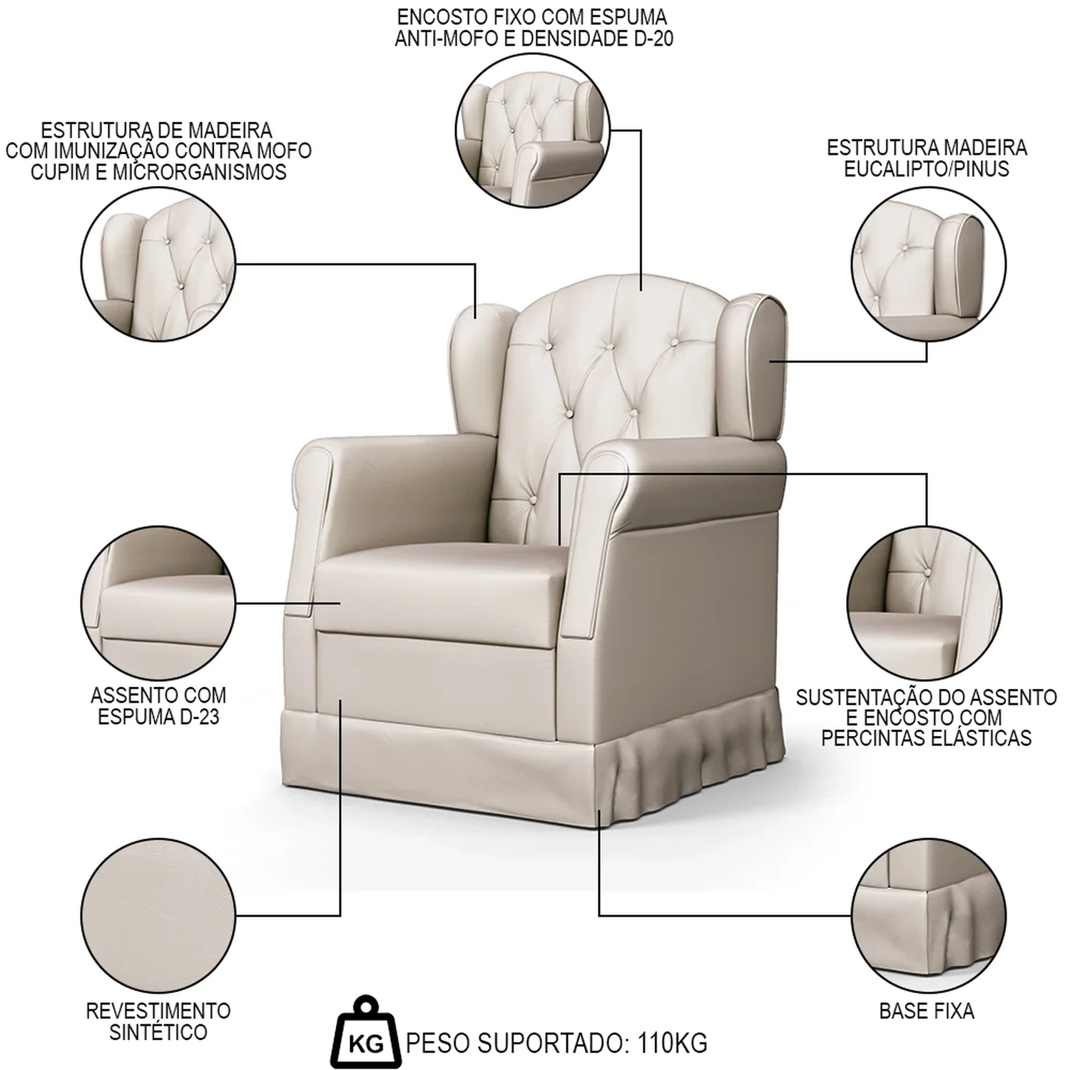 Peso Suportado: 110 kg.