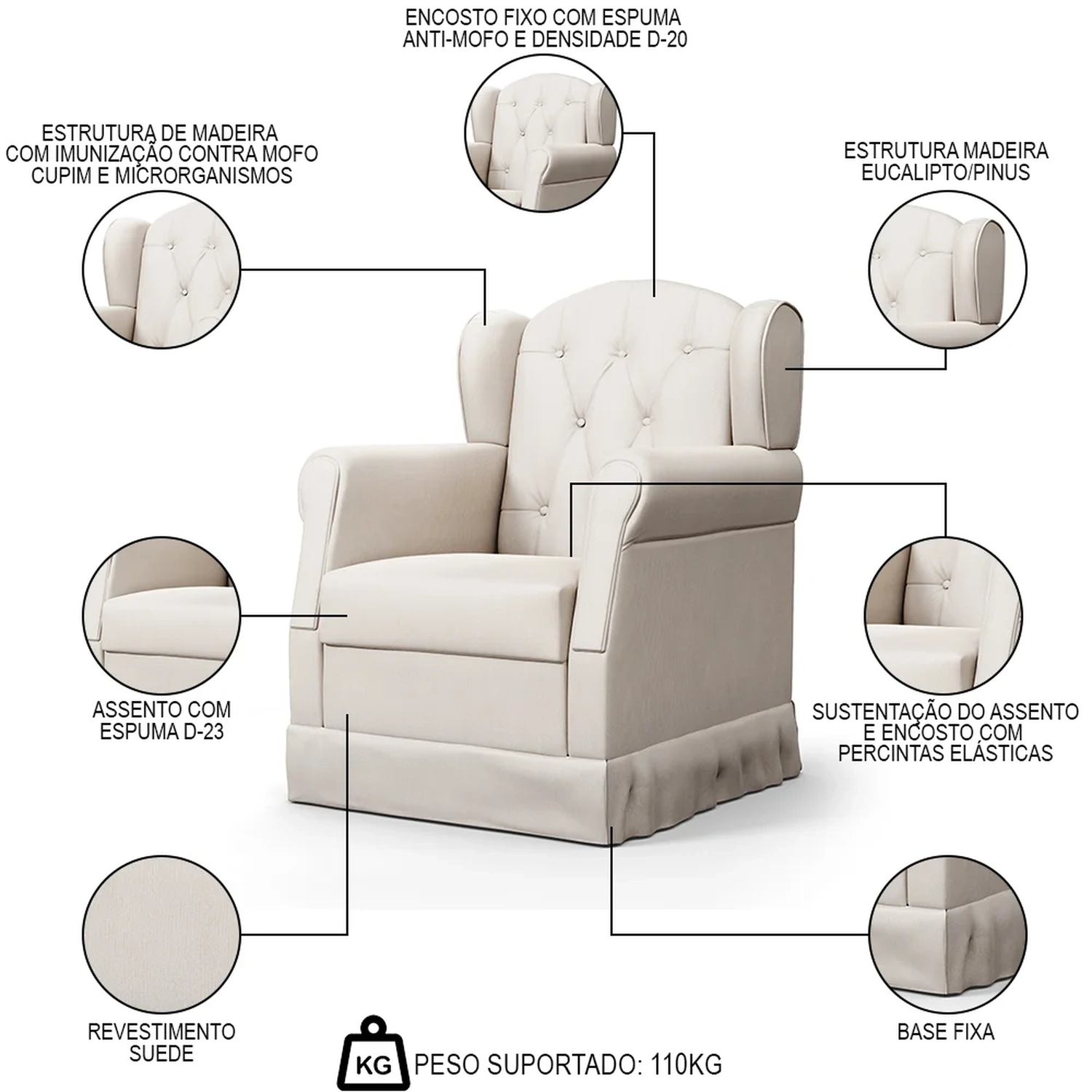 Peso Suportado: 110 kg.