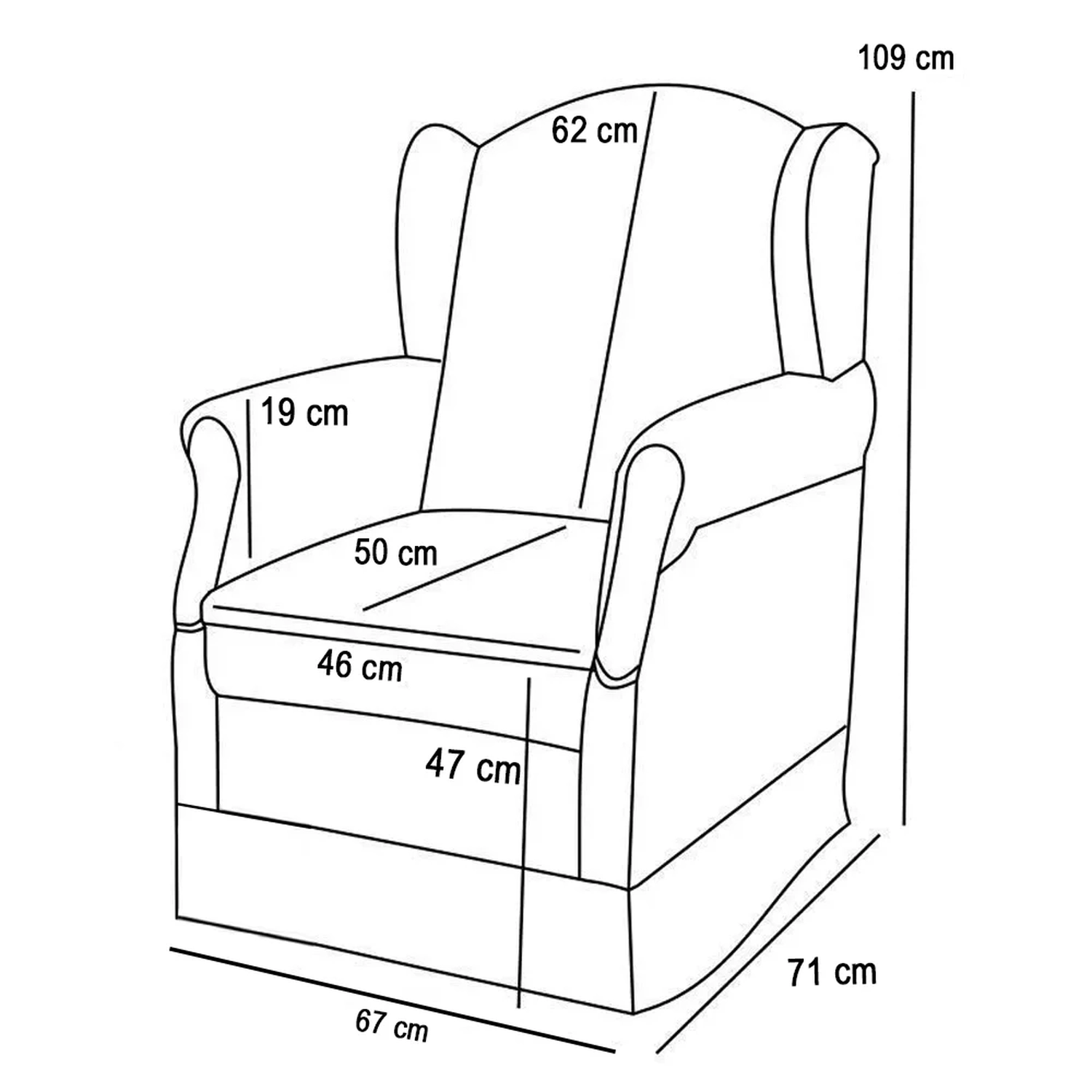 Largura Interna do Assento: 46 cm.
