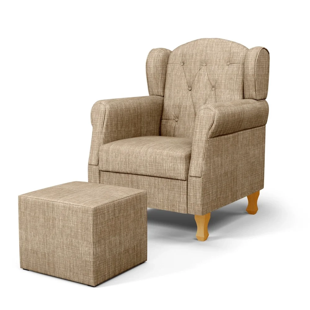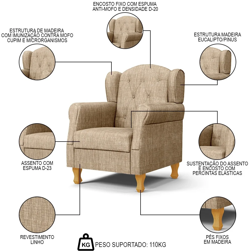 Conteúdo da Embalagem: 1 Poltrona, 4 Pés de Madeira, 1 Puff.