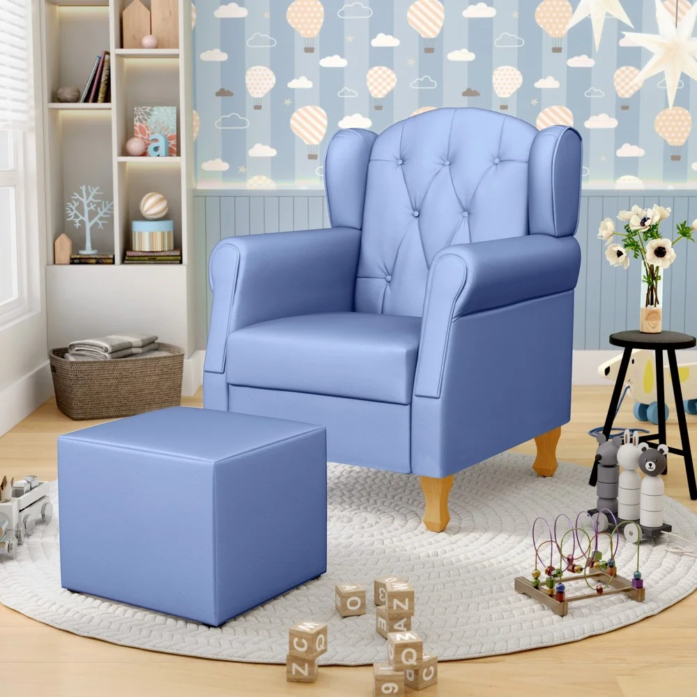 A Poltrona de Amamentação Pés Madeira e Puff Lucy Z39 Sintético Azul - Mpozenato é a escolha ideal para as mamães que buscam conforto, beleza e qualidade. Ela possui uma estrutura de madeira de reflorestamento com imunização contra mofo, cupim e microrganismos, garantindo maior durabilidade e resistência. A sustentação do assento e encosto é feita com percintas elásticas que proporcionam mais maciez e ergonomia. O tecido é de alta qualidade e espuma macia, que proporcionam um toque suave e aconchegante nos assentos, braços e encosto. A Poltrona possui estrutura firme e segura pois é produzida com pés de madeira para fixação na base. Além disso, vem com um puff para apoiar os pés e relaxar. Ela está disponível em várias cores para você escolher a que mais combina com o seu estilo. Não perca essa oportunidade de ter uma Poltrona Amamentação e Descanso na sua casa. Você vai se surpreender com o conforto e a qualidade dessa poltrona. Adquira já a sua!