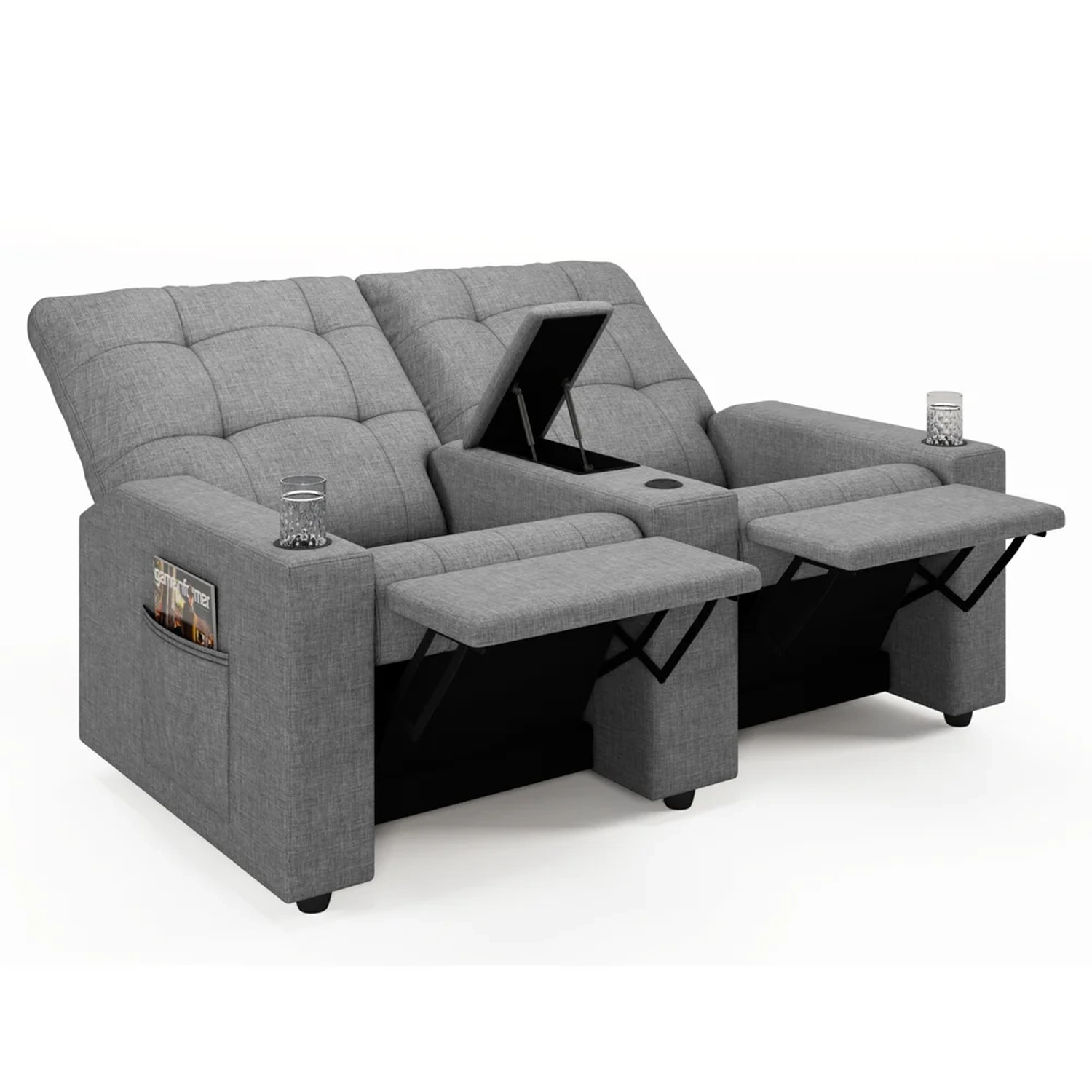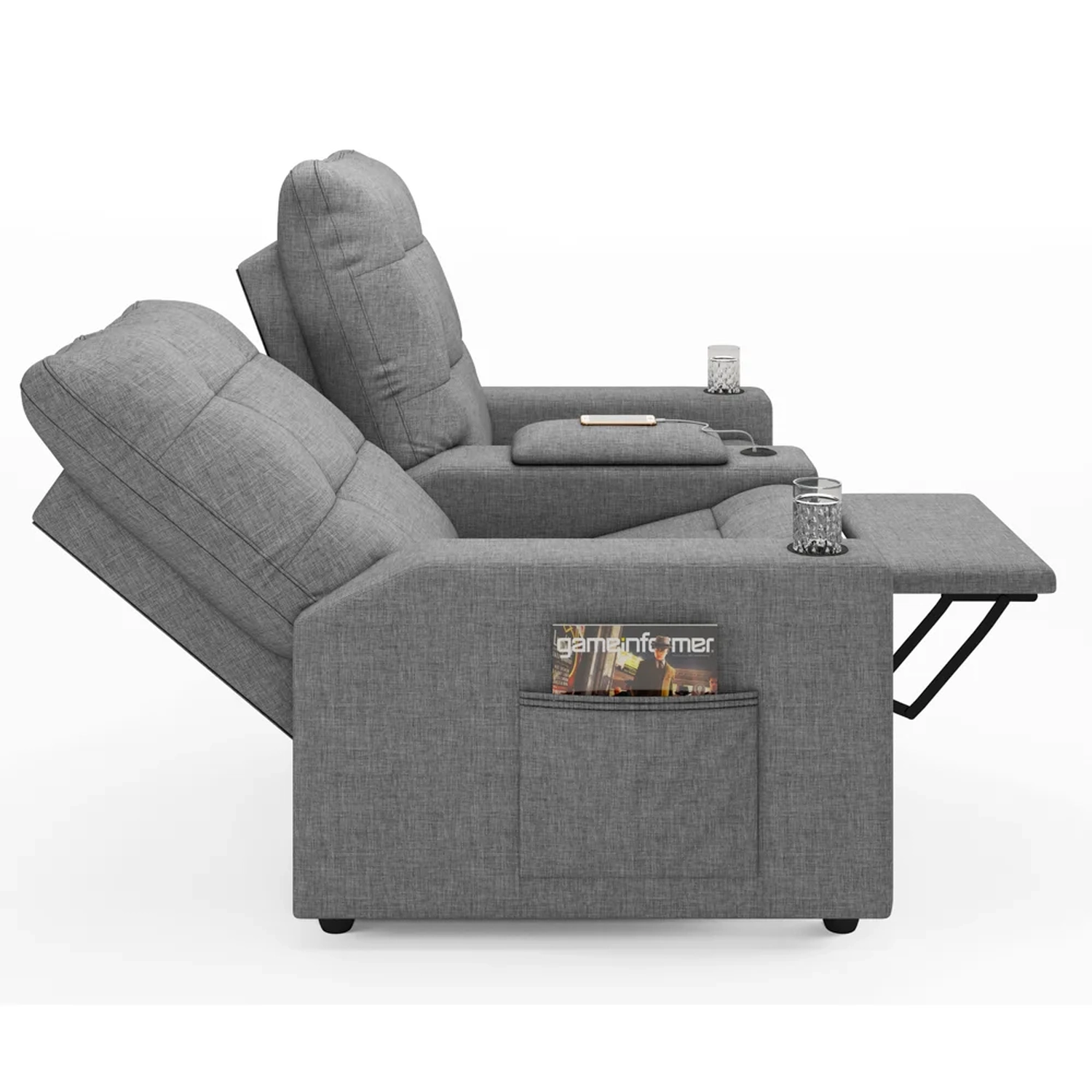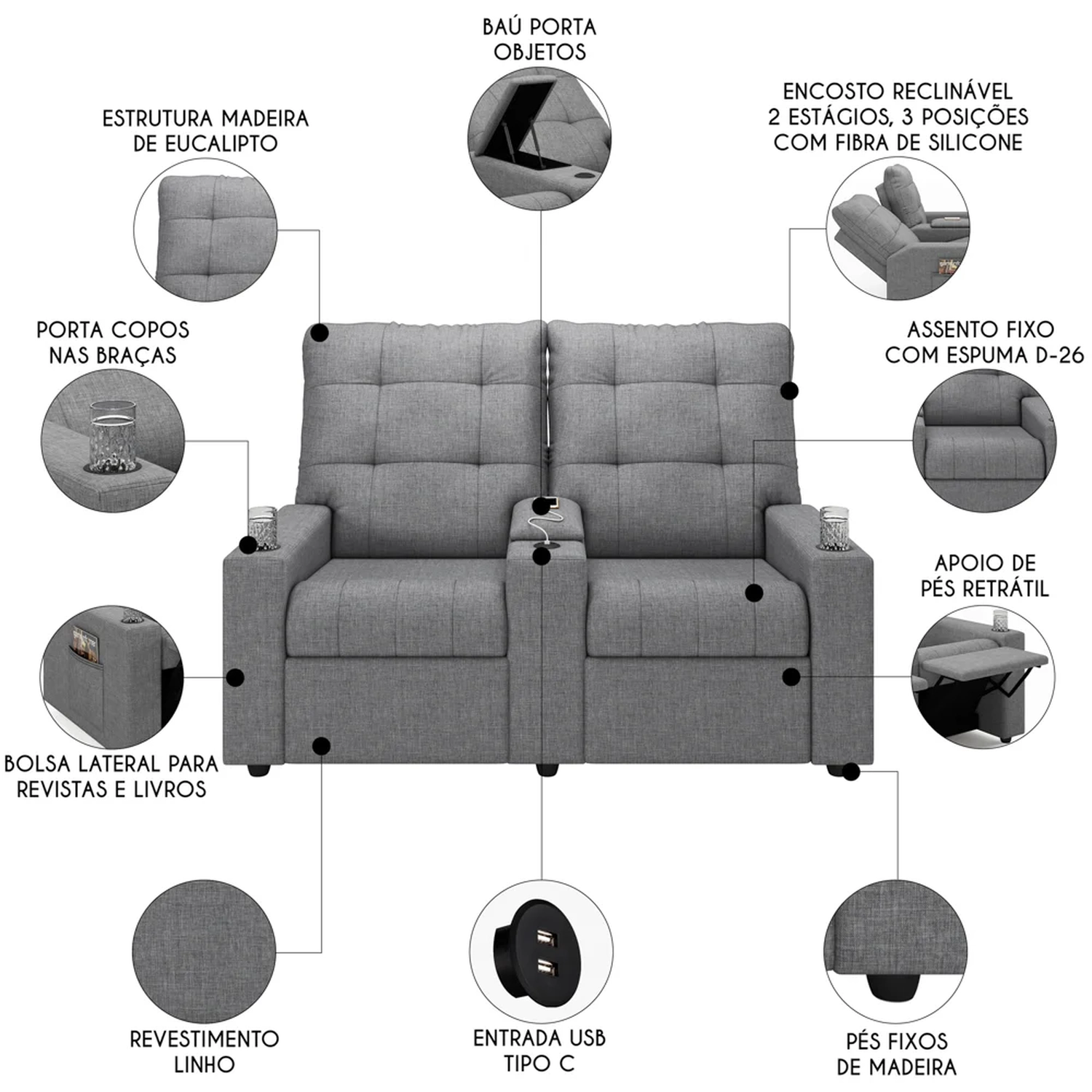 Conheça a Poltrona de Cinema Reclinável 2 Lugares Baú USB Mallie FH9 Linho Cinza, da Mpozenato projetada para oferecer o máximo conforto e ter seu próprio cinema em casa.