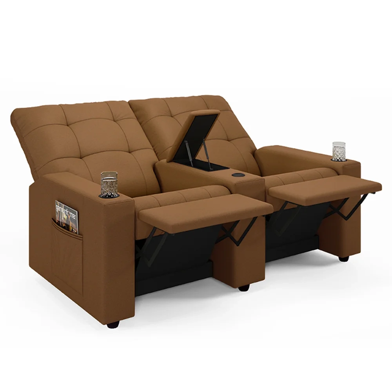 Conheça a Poltrona de Cinema Reclinável 2 Lugares Baú USB Mallie FH9 PU Caramelo, da Mpozenato projetada para oferecer o máximo conforto e ter seu próprio cinema em casa.