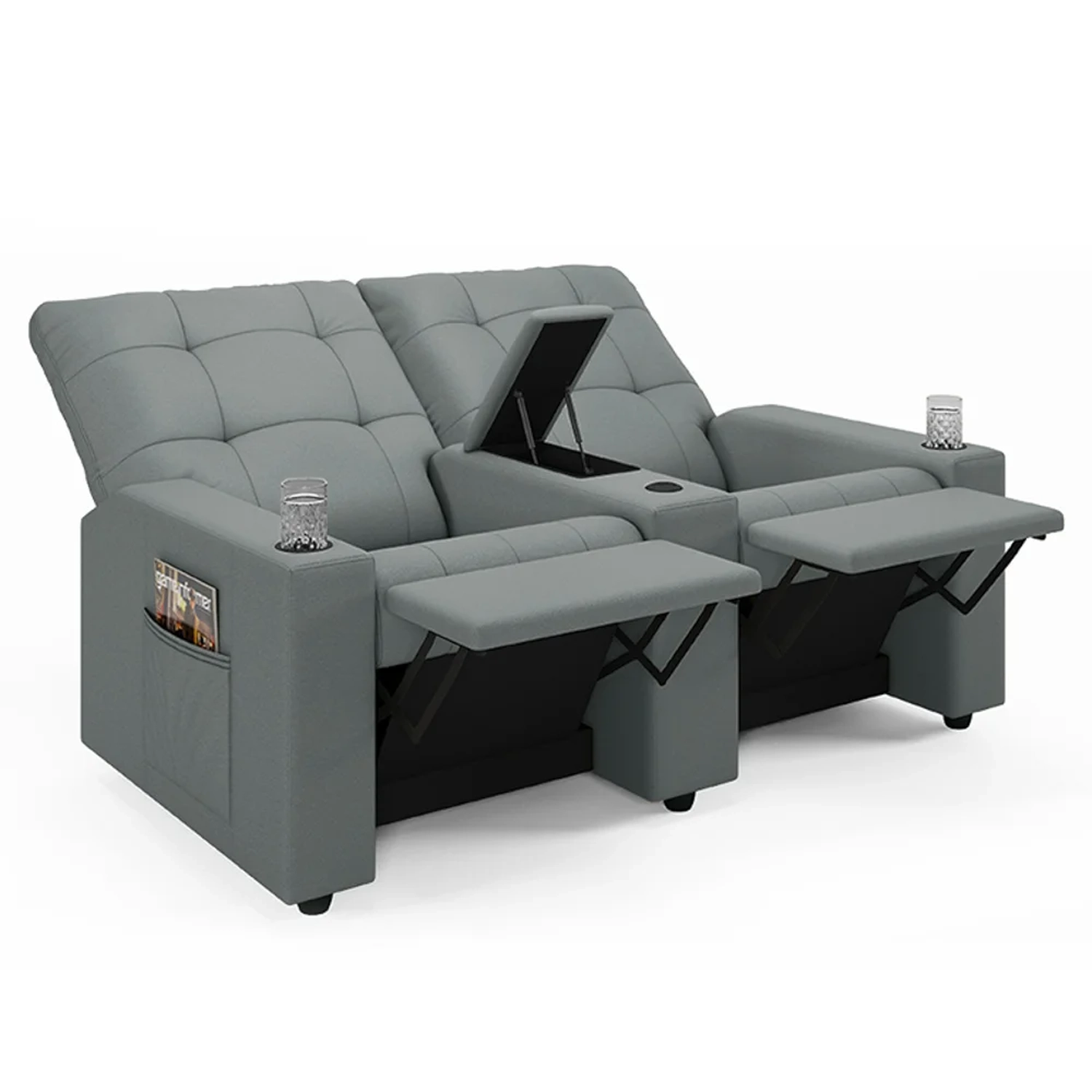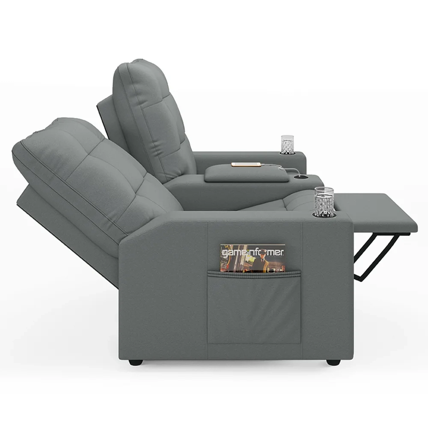 Conheça a Poltrona de Cinema Reclinável 2 Lugares Baú USB Mallie FH9 PU Cinza, da Mpozenato projetada para oferecer o máximo conforto e ter seu próprio cinema em casa.