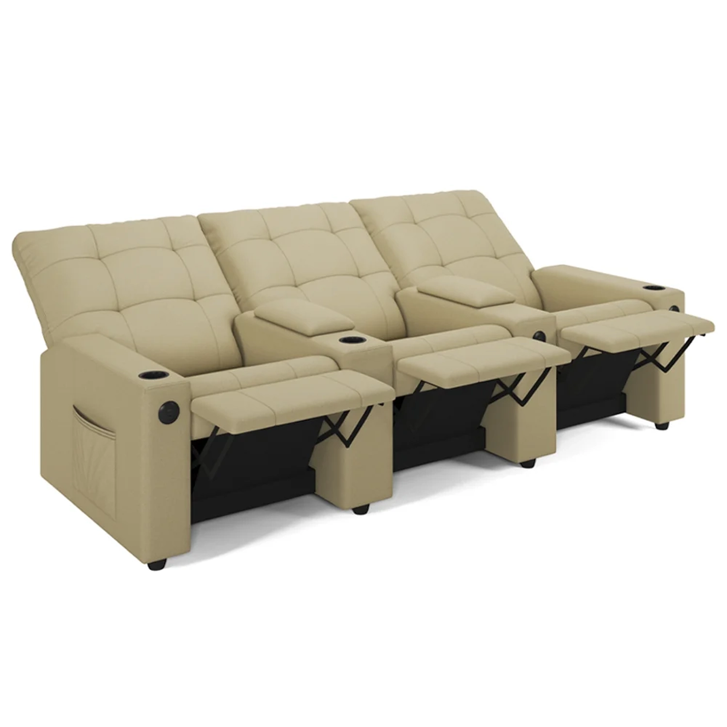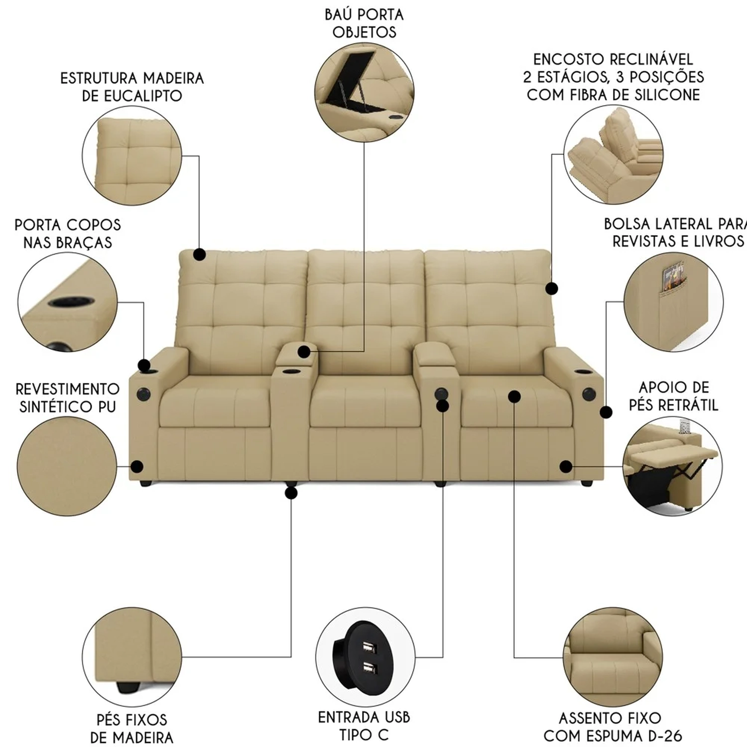 Conheça a Poltrona de Cinema Reclinável 3 Lugares Baú USB Mallie FH9 Veludo Bege, da Mpozenato projetada para oferecer o máximo conforto e ter seu próprio cinema em casa.