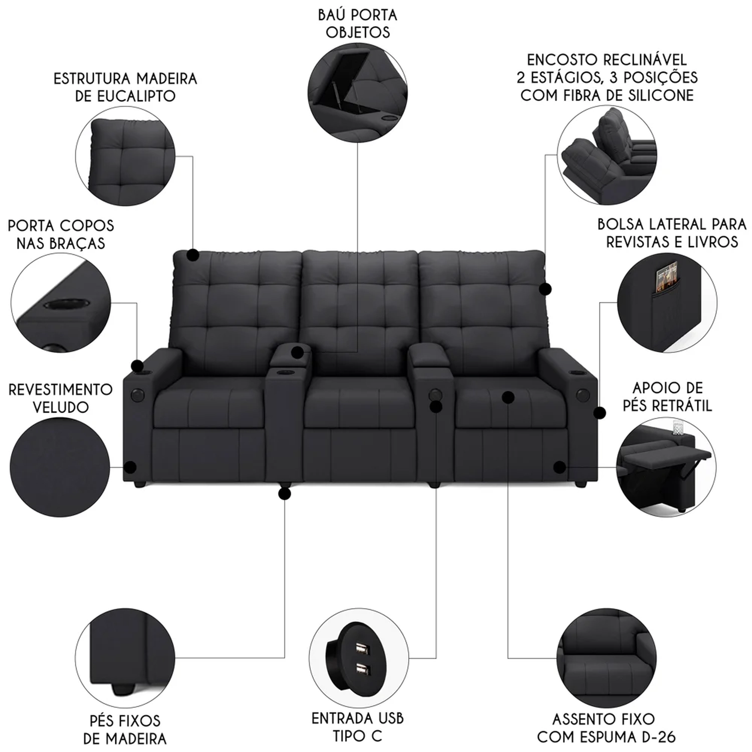 Tipo de Encosto: Reclinável.