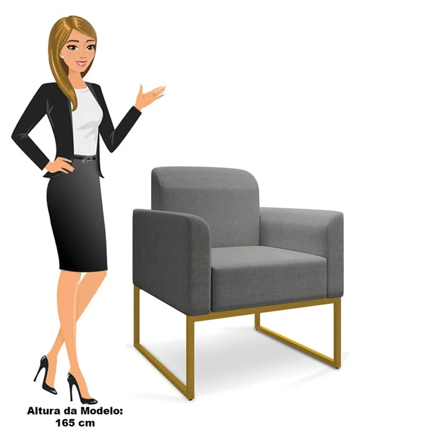 Poltrona Decorativa Base Industrial Dourada Maressa A26 Linho Grafite - Ibiza 86534