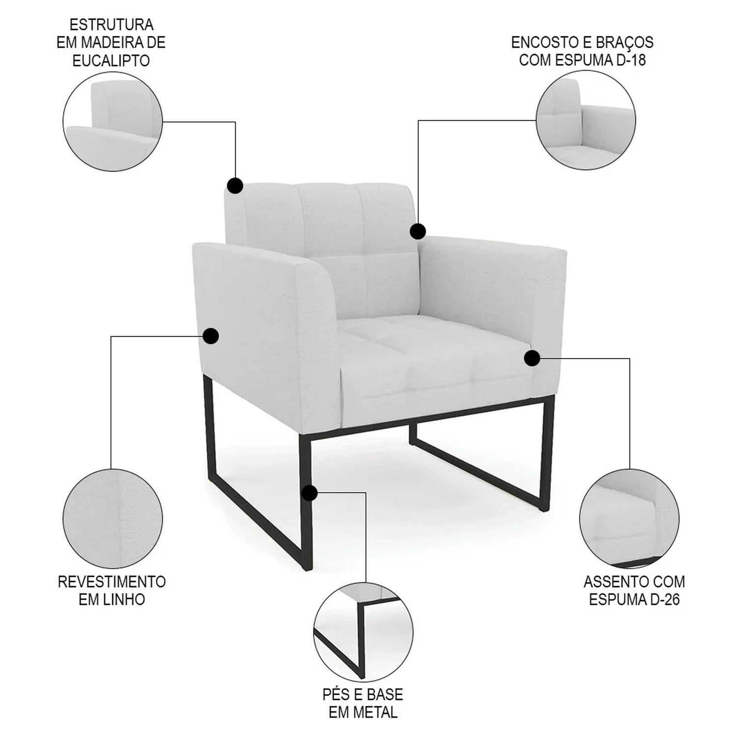 Você está procurando uma poltrona que combine com a sua Sala De Estar, recepção ou seu quarto, que ofereça conforto e qualidade? Então você vai adorar a Poltrona Decorativa Base Industrial Preto Ana Linho Cinza, da Ibiza!