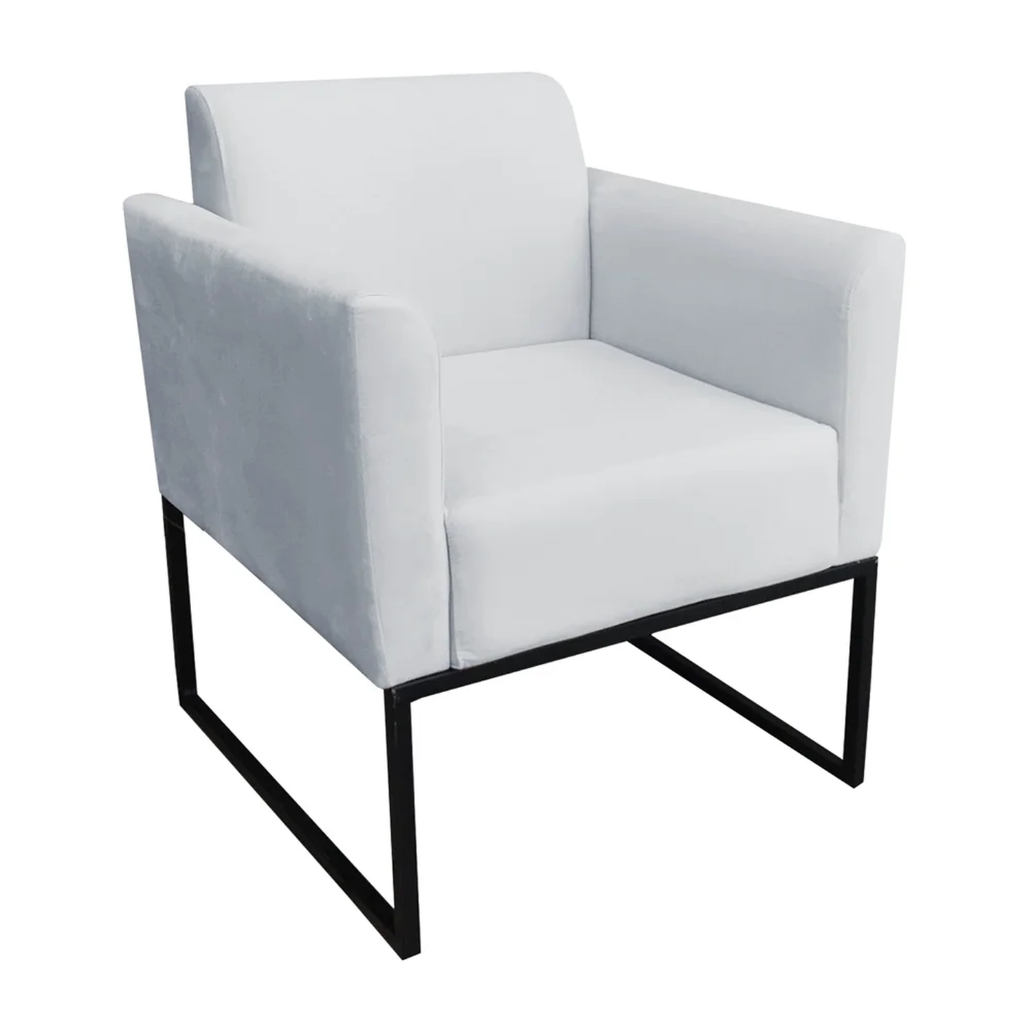 Poltrona Decorativa Base Industrial Preto Maressa S10 Suede Cinza - Ibiza 78748