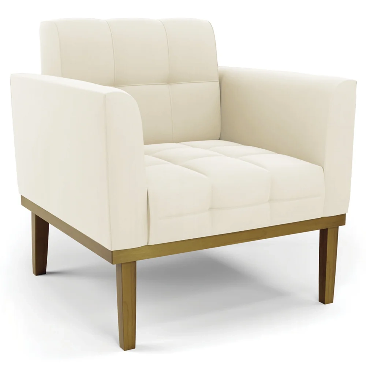 Você está procurando uma poltrona que combine com a sua Sala De Estar, recepção ou seu quarto, que ofereça conforto e qualidade? Então você vai adorar a Poltrona Decorativa Base Madeira Castanho Ana Veludo Bege, da Ibiza!