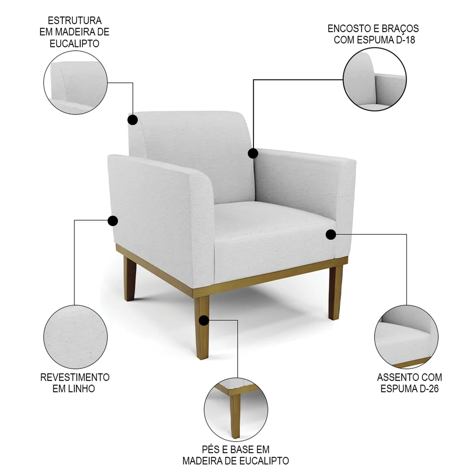 Material dos Pés: Madeira Eucalipto.