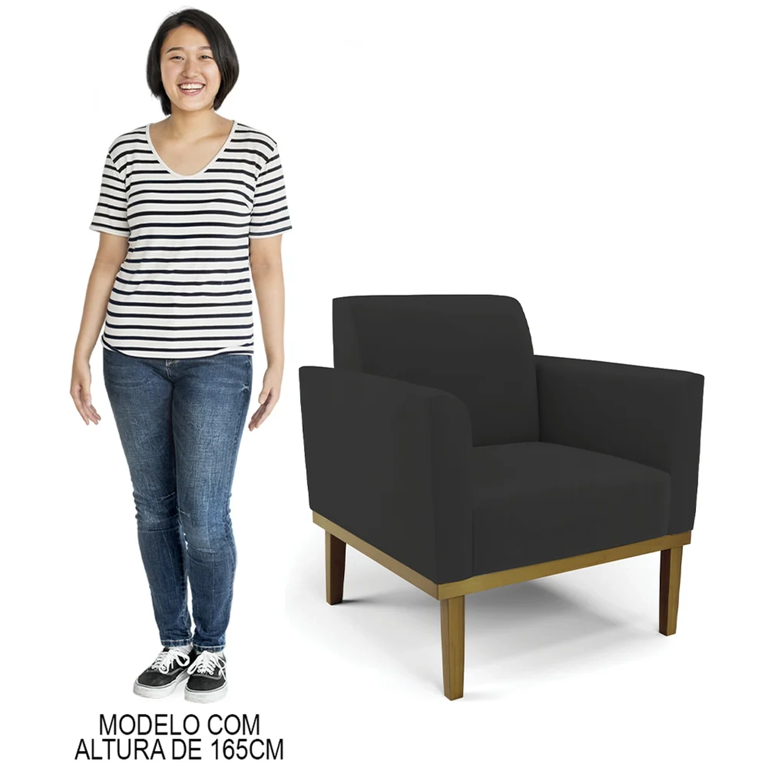 Você está procurando uma poltrona que combine com a sua Sala De Estar, recepção ou seu quarto, que ofereça conforto e qualidade? Então você vai adorar a Poltrona Decorativa Base Madeira Castanho Maressa Veludo Preto, da Ibiza!