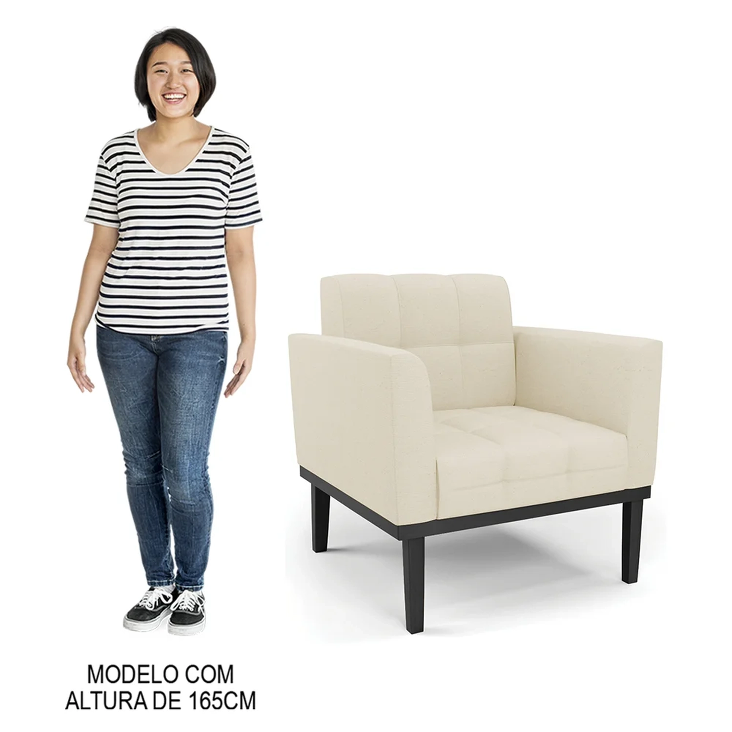 Você está procurando uma poltrona que combine com a sua Sala De Estar, recepção ou seu quarto, que ofereça conforto e qualidade? Então você vai adorar a Poltrona Decorativa Base Madeira Preto Ana Linho Bege, da Ibiza!
