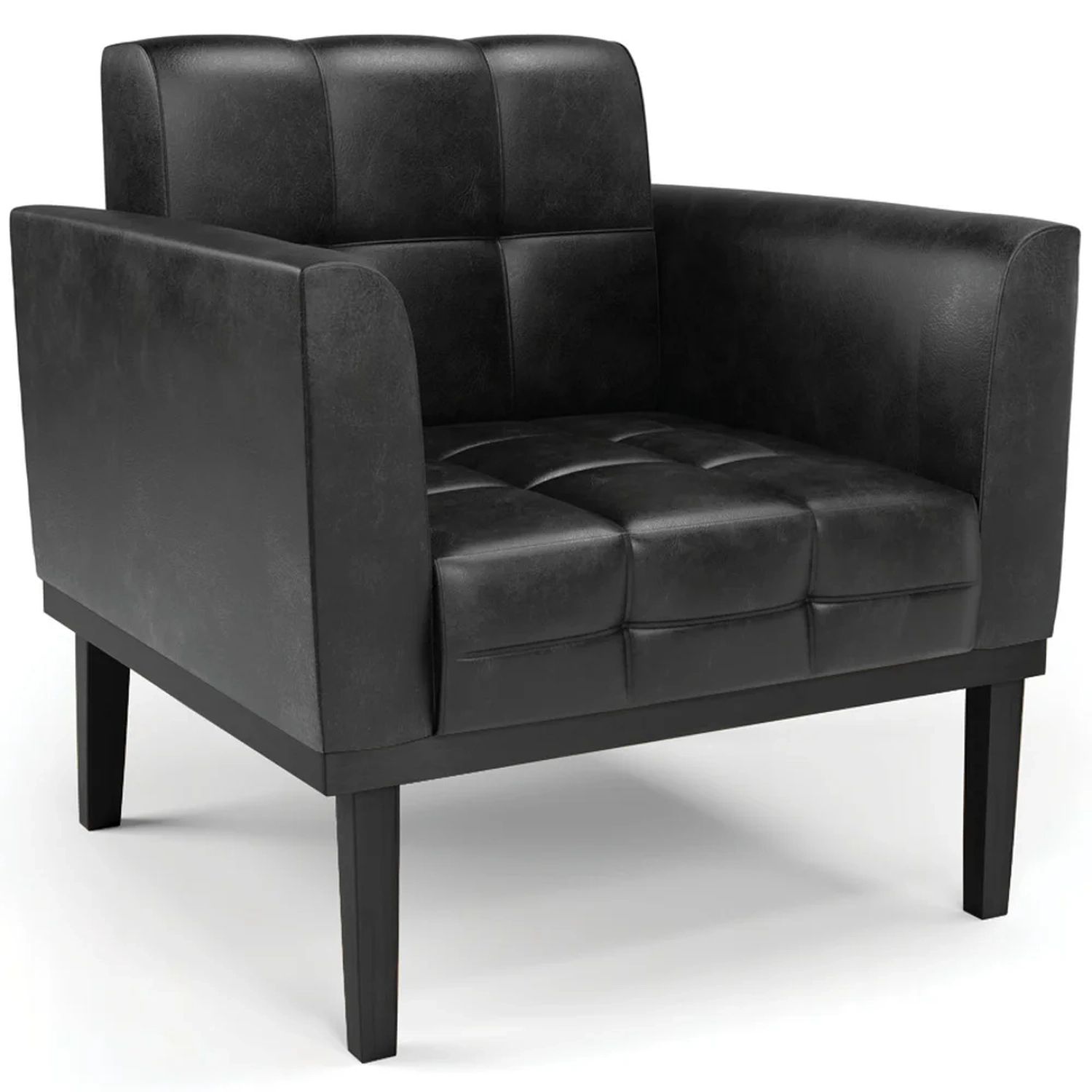 Você está procurando uma poltrona que combine com a sua Sala De Estar, recepção ou seu quarto, que ofereça conforto e qualidade? Então você vai adorar a Poltrona Decorativa Base Madeira Preto Ana Sintético PU Preto, da Ibiza!